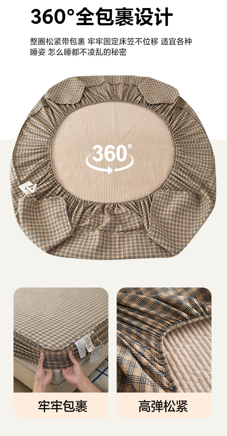 佳笠家居 2025新款全棉纯棉水洗棉小格子加婴儿绒床笠单床笠单品床笠单件床笠 暖绒-卡其格