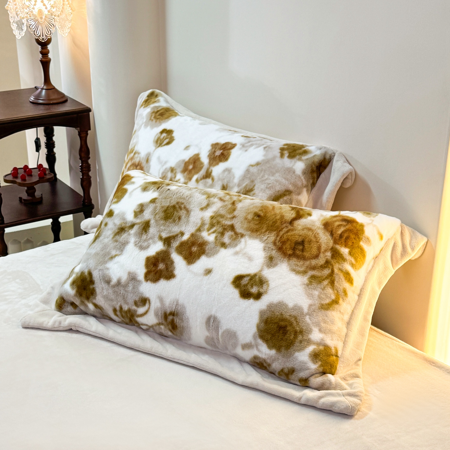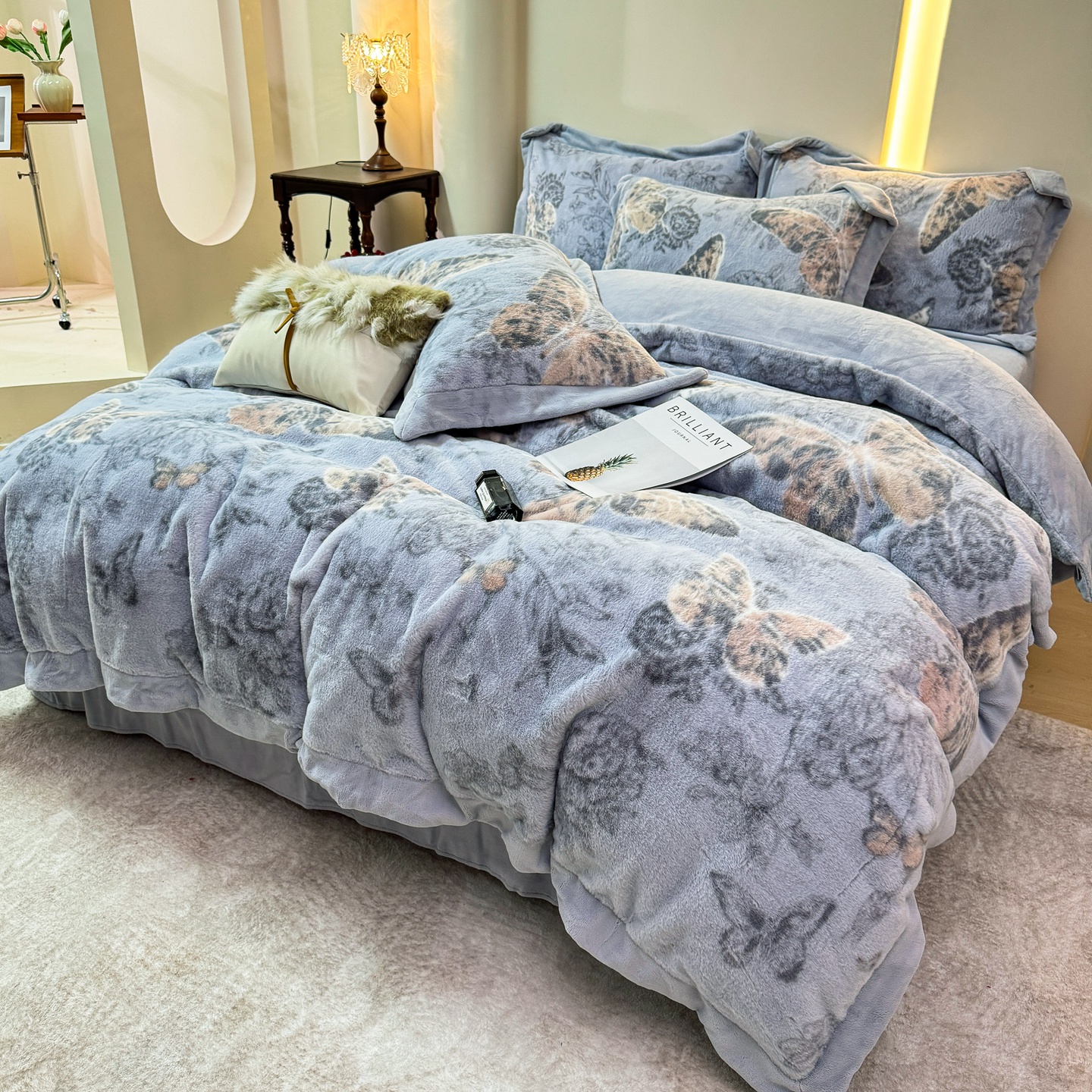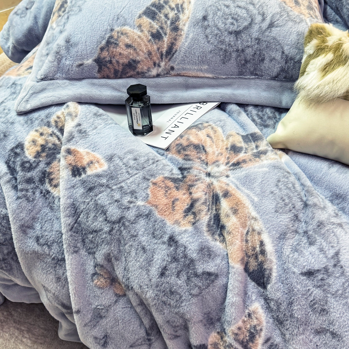 优姿家纺 2025新款380克11斤兔毛绒印花四件套 秋枫-米色