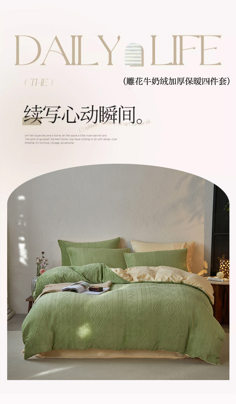 当前位置: 91家纺网 > 商品网购 > 床品套件 > 四件套 > 牛奶绒四件套 > 眠博士 2025新款雕花加厚牛奶绒系列四件套 雕花款-卡洛绿黄