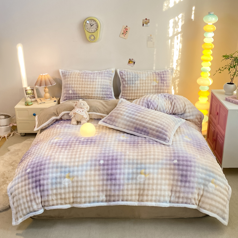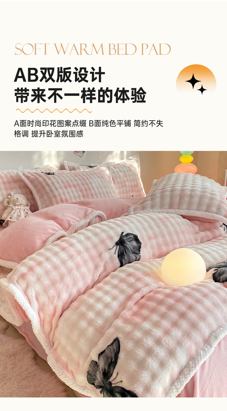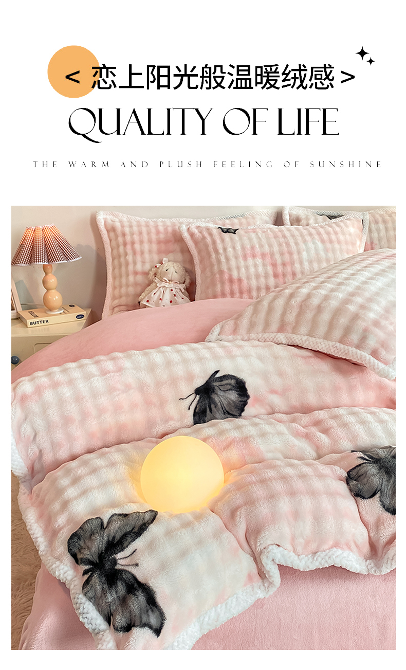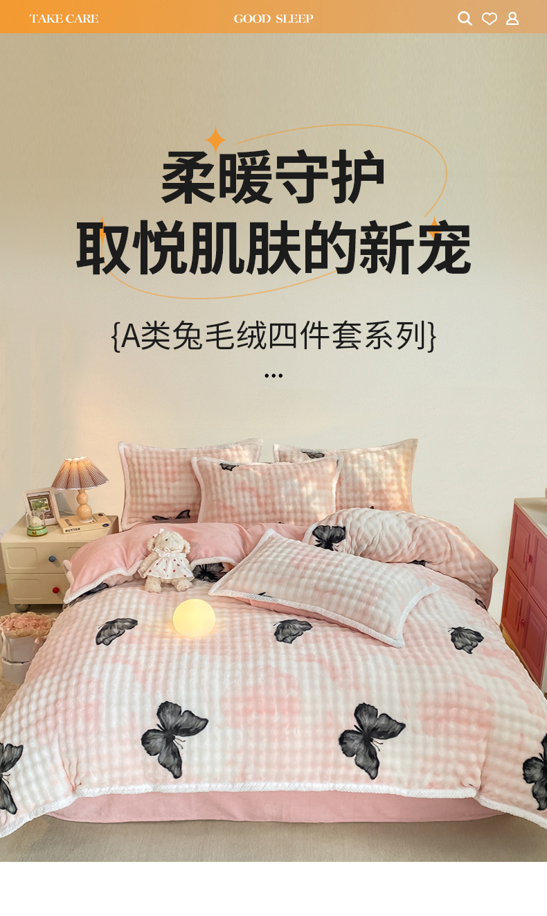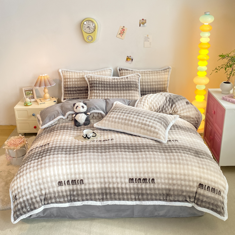 当前位置: 91家纺网 > 商品网购 > 床品套件 > 四件套 > 兔毛绒四件套 > 悦织湾家纺 2025新款床单床笠款A类仿兔毛绒印花泡泡四件套轻奢牛奶绒四件套单双人学生宿舍 泡泡蝴蝶灰