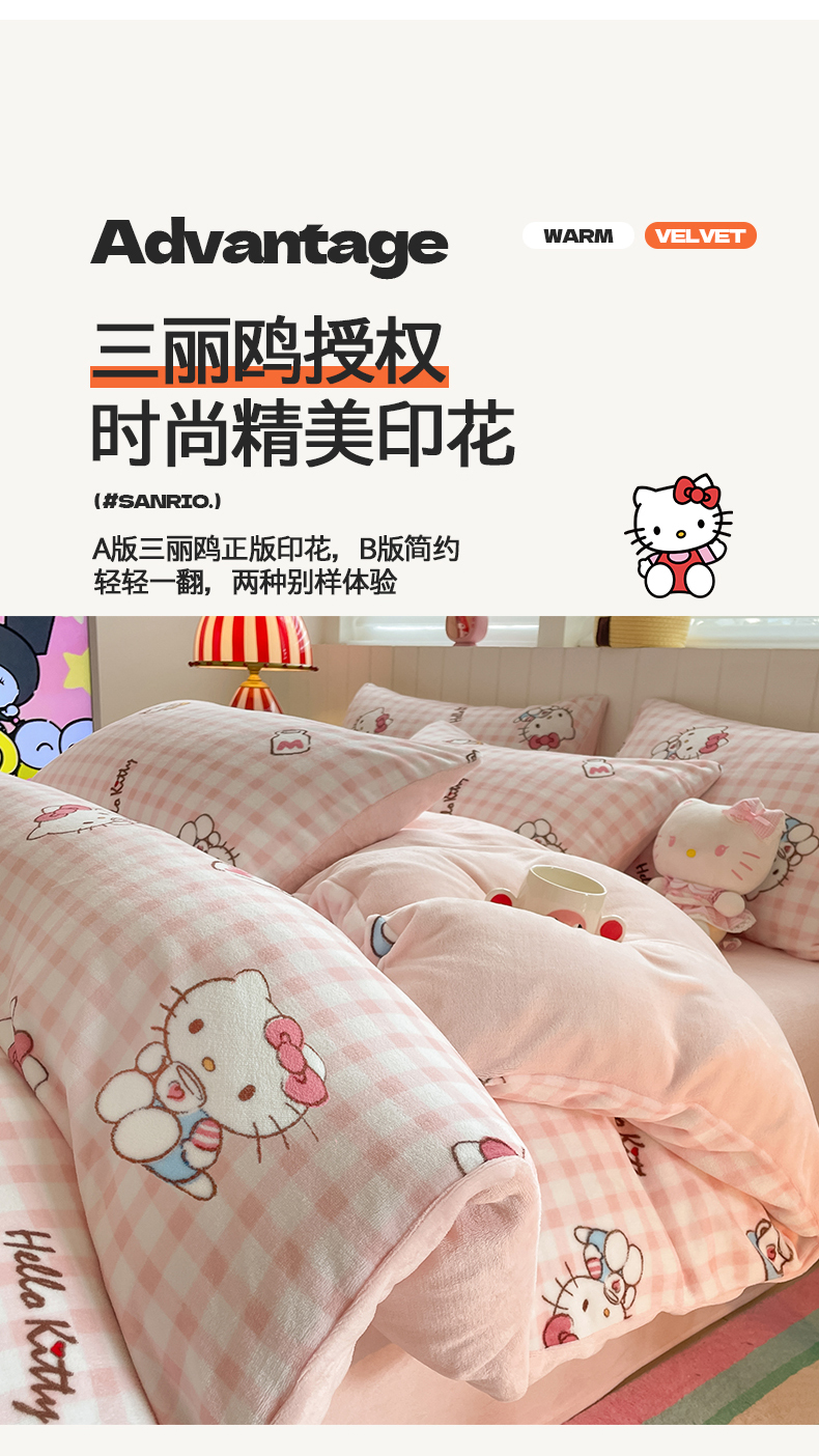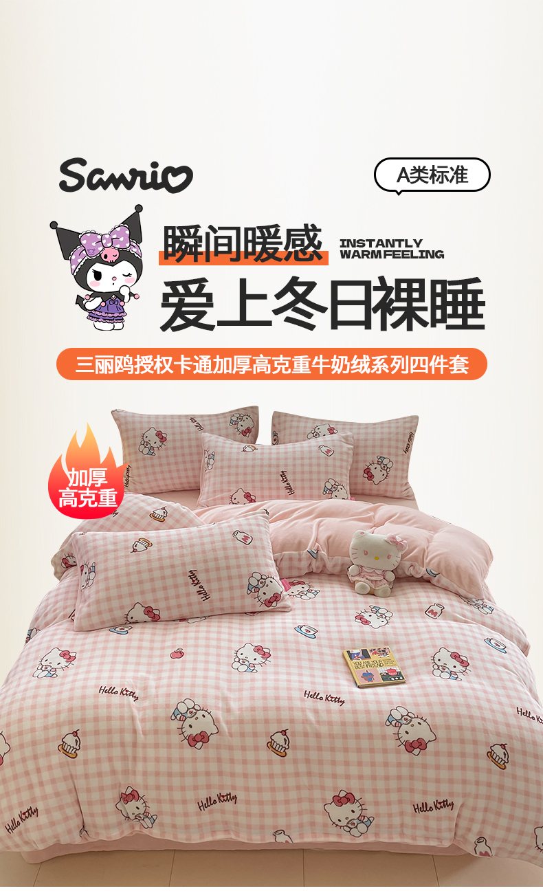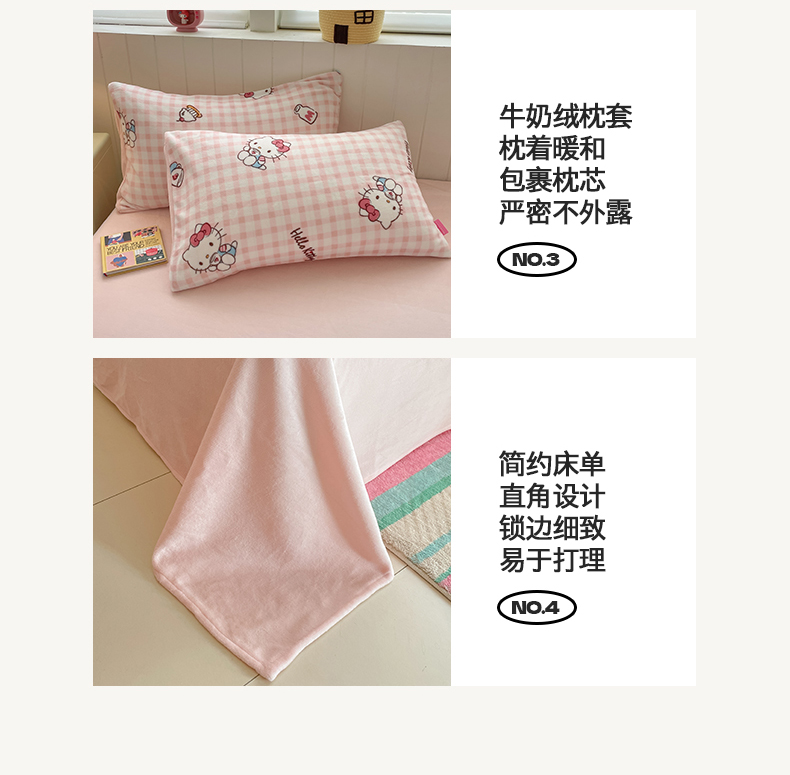 当前位置: 91家纺网 > 商品网购 > 床品套件 > 四件套 > 牛奶绒四件套 > 金爱家 2025新款A类正版三丽鸥授权卡通加厚高克重牛奶绒系列四件套 绒三丽鸥-甜心kitty粉