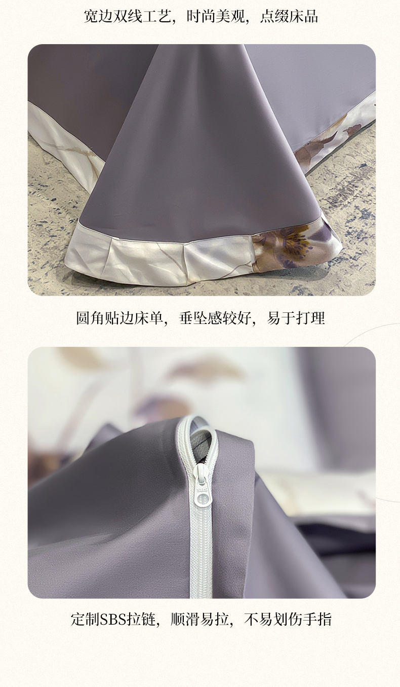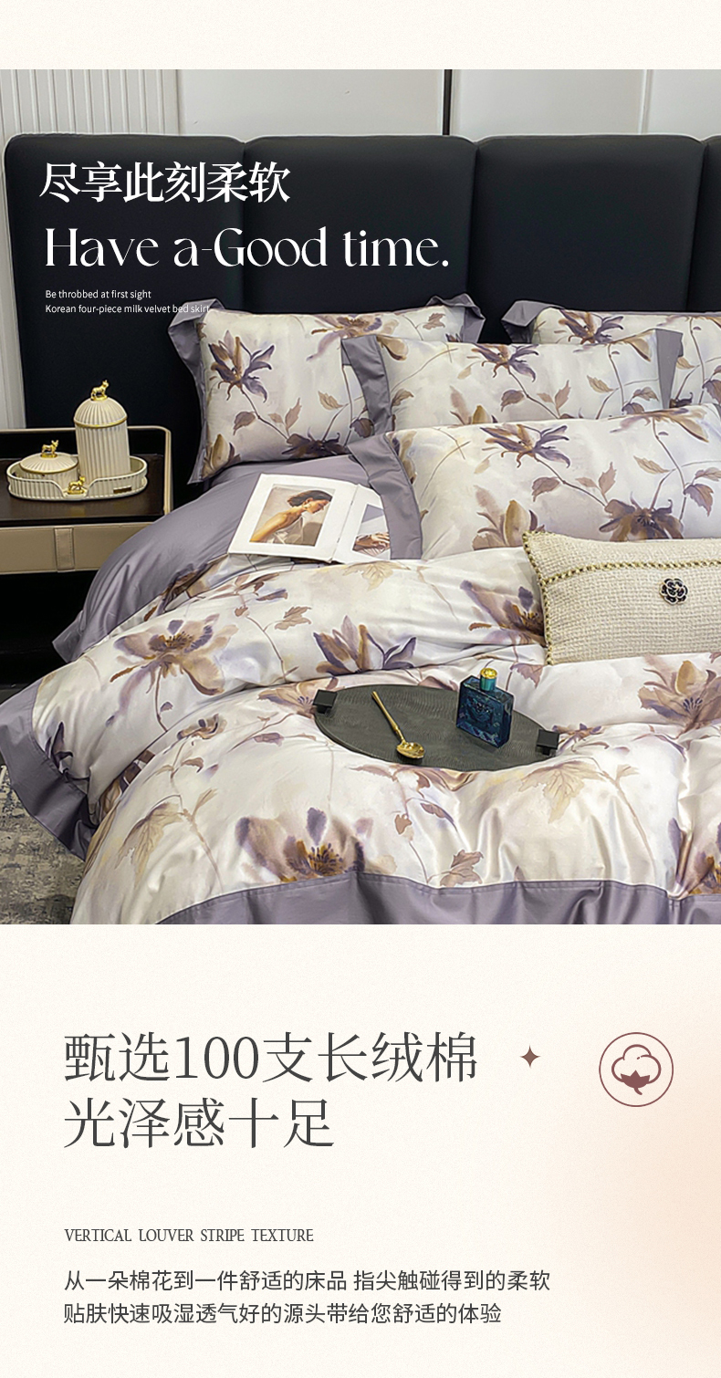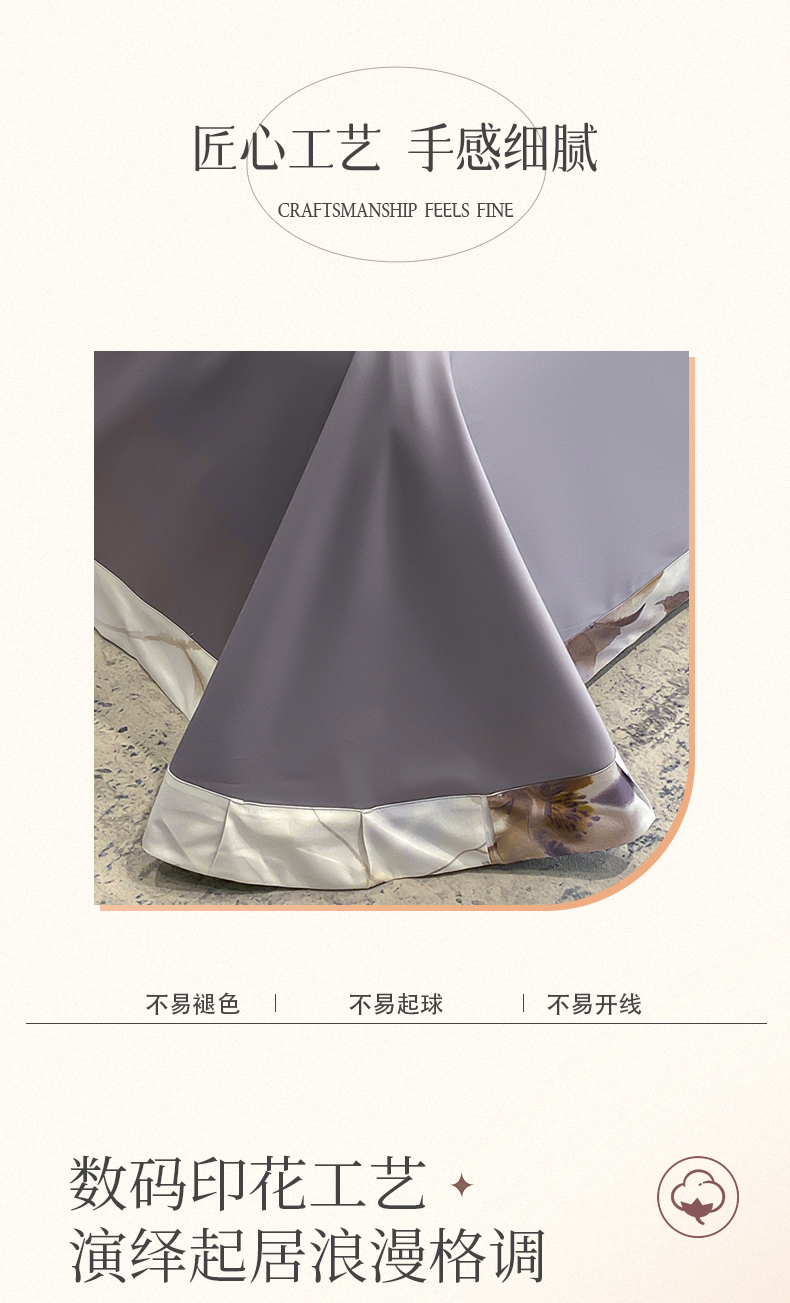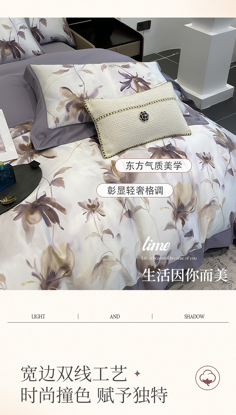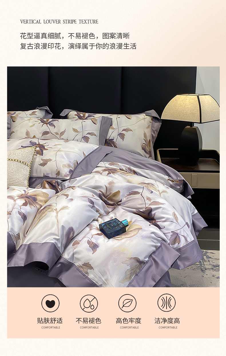 娇逸家居 2025新款100支新疆长绒棉纯棉数码印花全棉四件套(专版花型) 南溪-紫