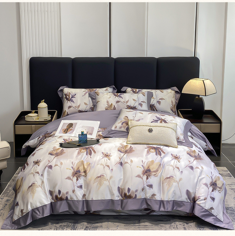 商品名称:娇逸家居 2025新款100支新疆长绒棉纯棉数码印花全棉四件套(专版花型) 南溪-紫