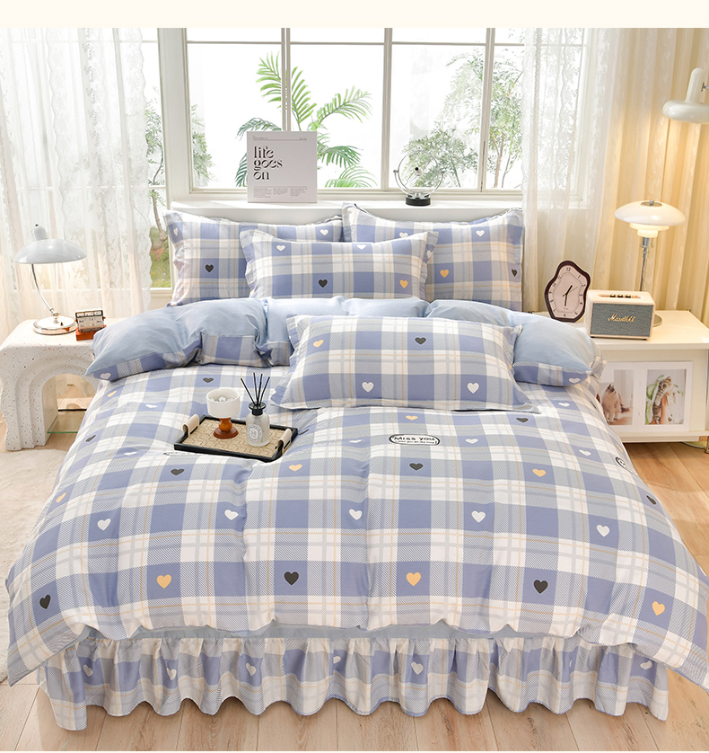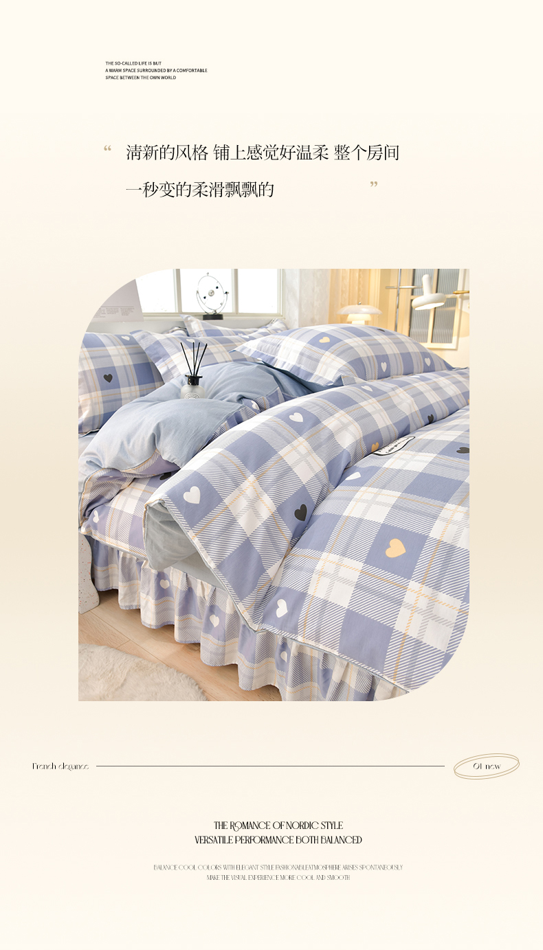 绘萱家居 2025新款100%全棉床裙款斜纹印花四件套 格律