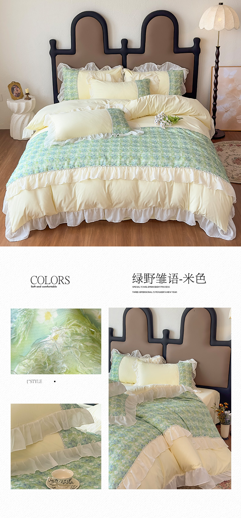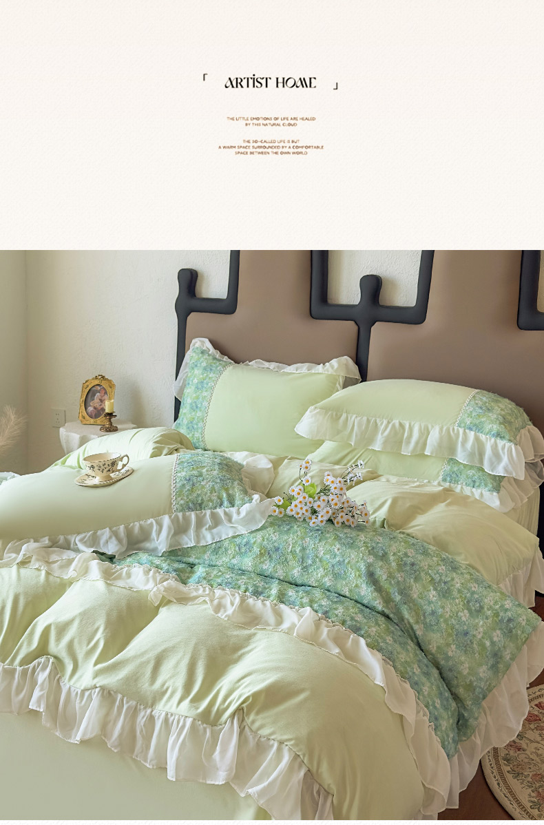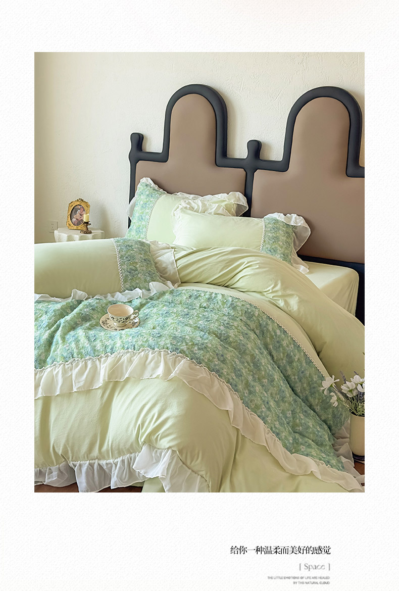 当前位置: 91家纺网 > 商品网购 > 床品套件 > 四件套 > 其它四件套 > 鼎丰家纺 2025新款法式高定雪纺花边四件套(提供买家秀) 绿野雏语-浅绿