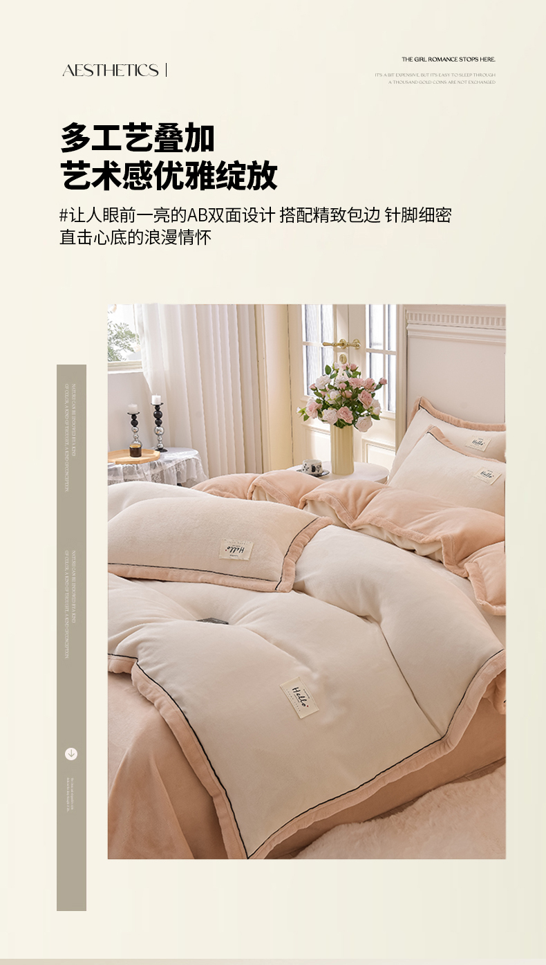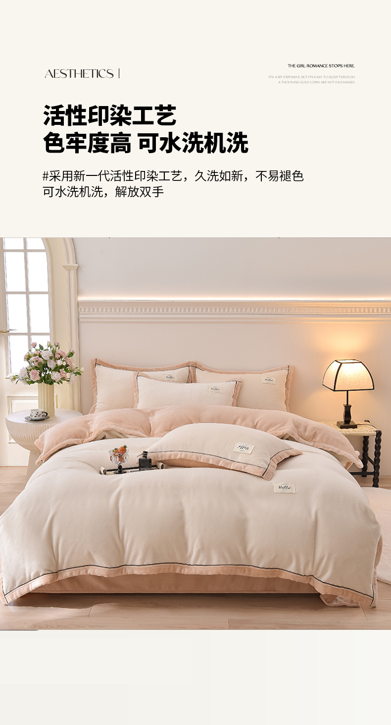 当前位置: 91家纺网 > 商品网购 > 床品套件 > 四件套 > 牛奶绒四件套 > 云恋家纺 纯色双面绒牛奶绒床上用品四件套加厚绒法兰绒床笠被套罩床单双人 青春-米拼金