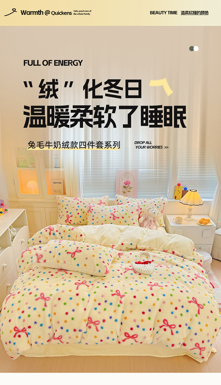 商品名称:(总)2025新款直播爆款保暖印花兔毛绒四件套牛奶绒床单款加厚套件
