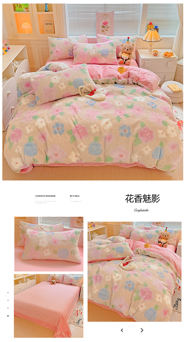 (总)2025新款直播爆款保暖印花兔毛绒四件套牛奶绒床单款加厚套件