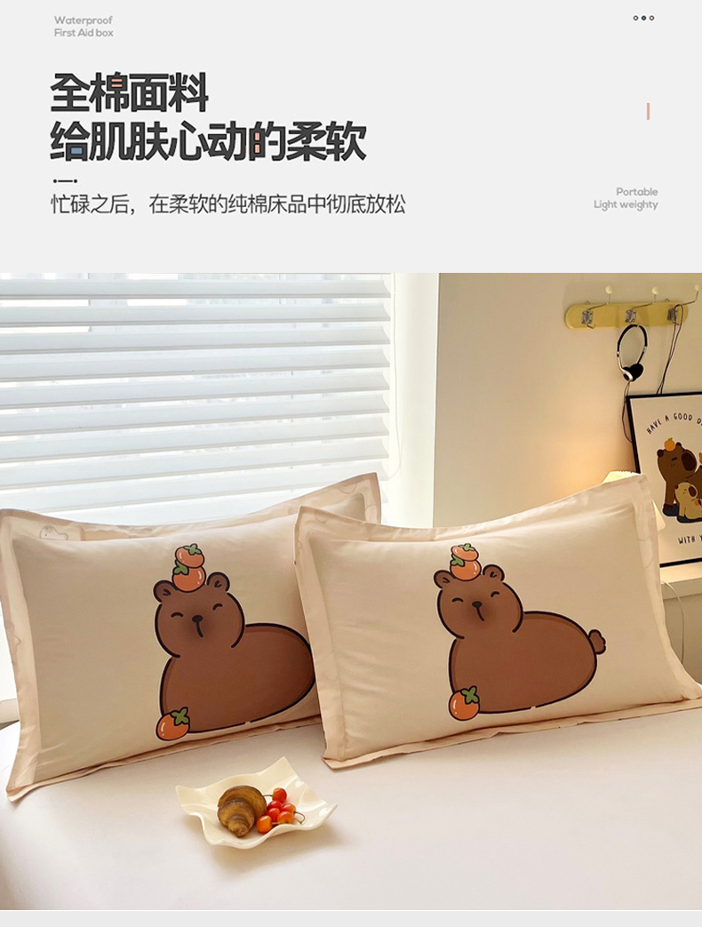 蘭菲家纺 2025新款全棉小版卡皮巴拉系列单品枕套 卡豚