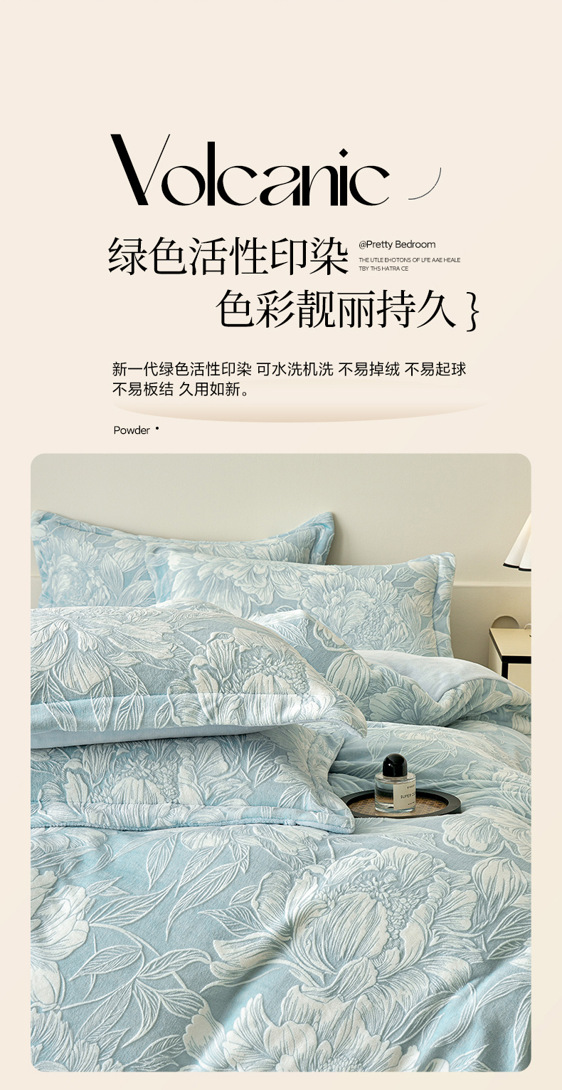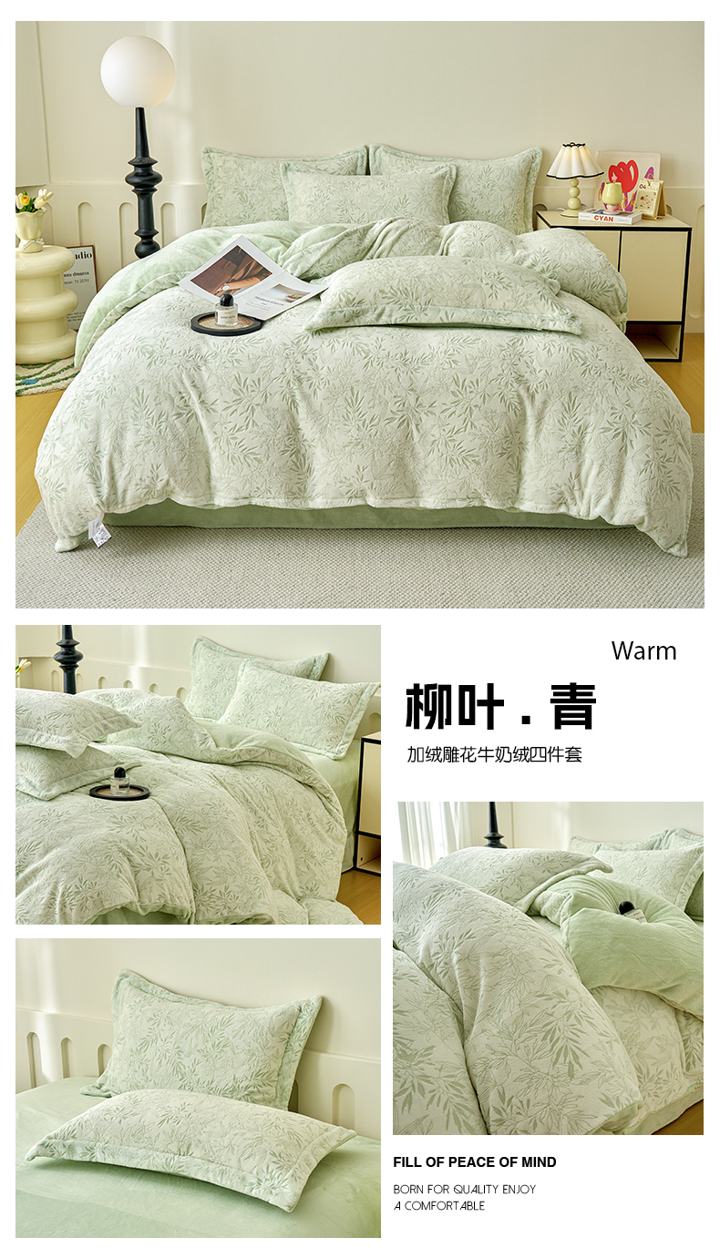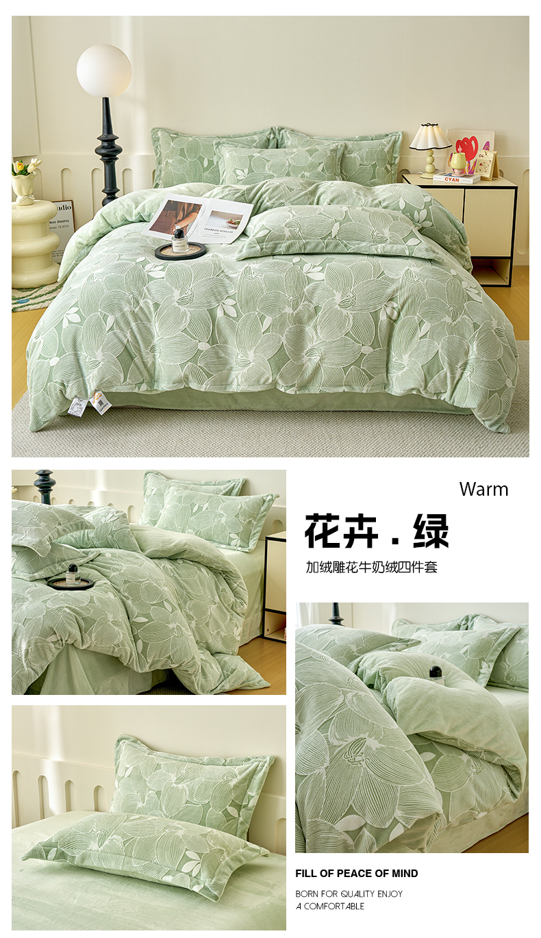 商品名称:贝诗梦 2025新款高克重230克5D雕花牛奶绒四件套 花卉绿