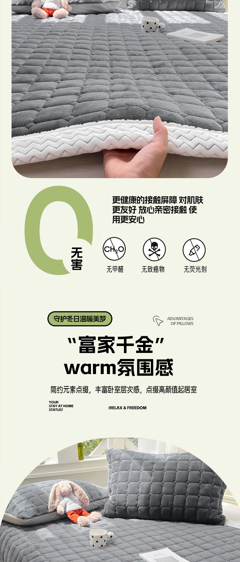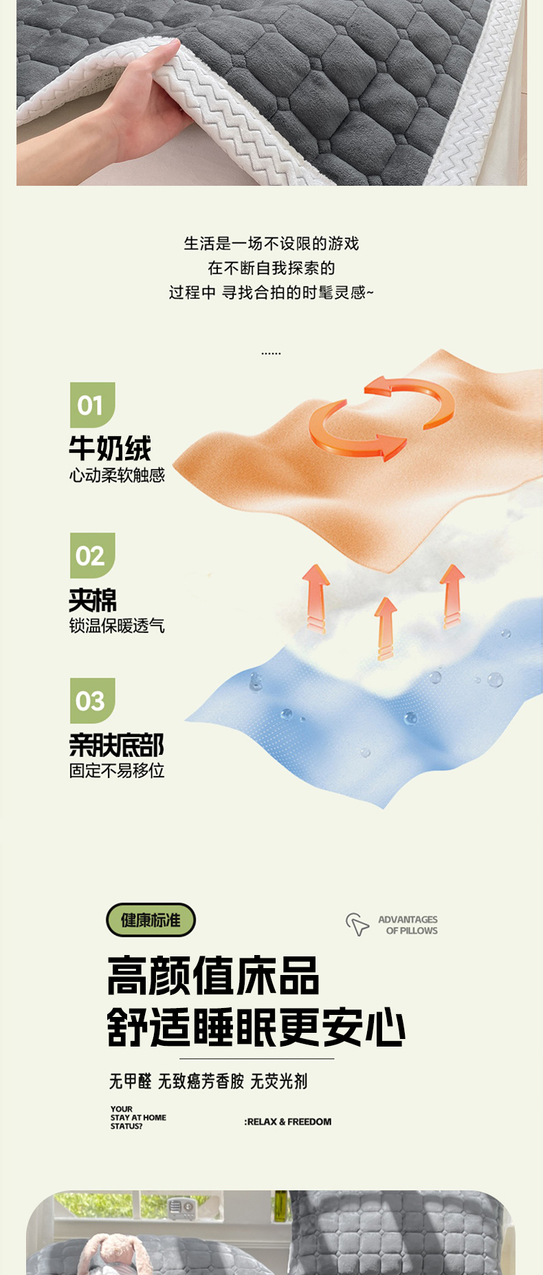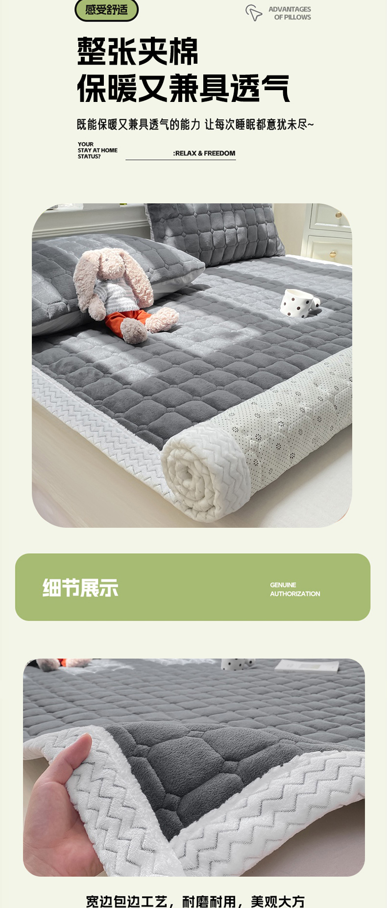 当前位置: 91家纺网 > 商品网购 > 床垫/床褥 > 普通床垫 > 2025年新款纯色牛奶绒夹棉床垫-风格一 深灰