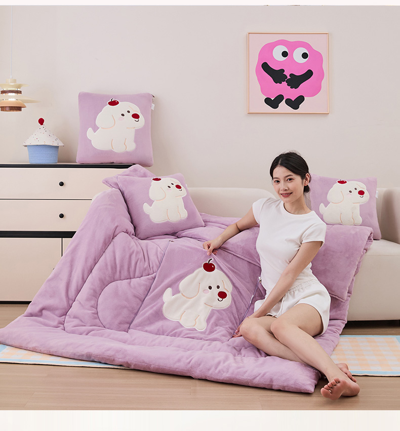 商品名称:哩哩熊2025抱枕被子两用加厚牛奶绒二合一汽车载枕头办公室午睡毯子冬天靠枕-樱桃小狗 樱桃小狗-香芋紫