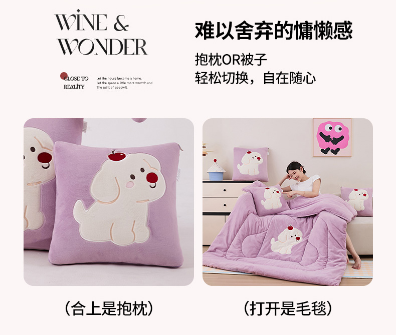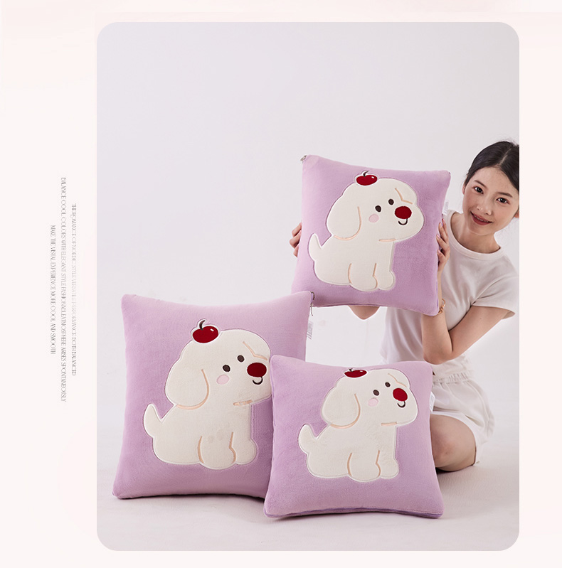 哩哩熊2025抱枕被子两用加厚牛奶绒二合一汽车载枕头办公室午睡毯子冬天靠枕-樱桃小狗 樱桃小狗-香芋紫