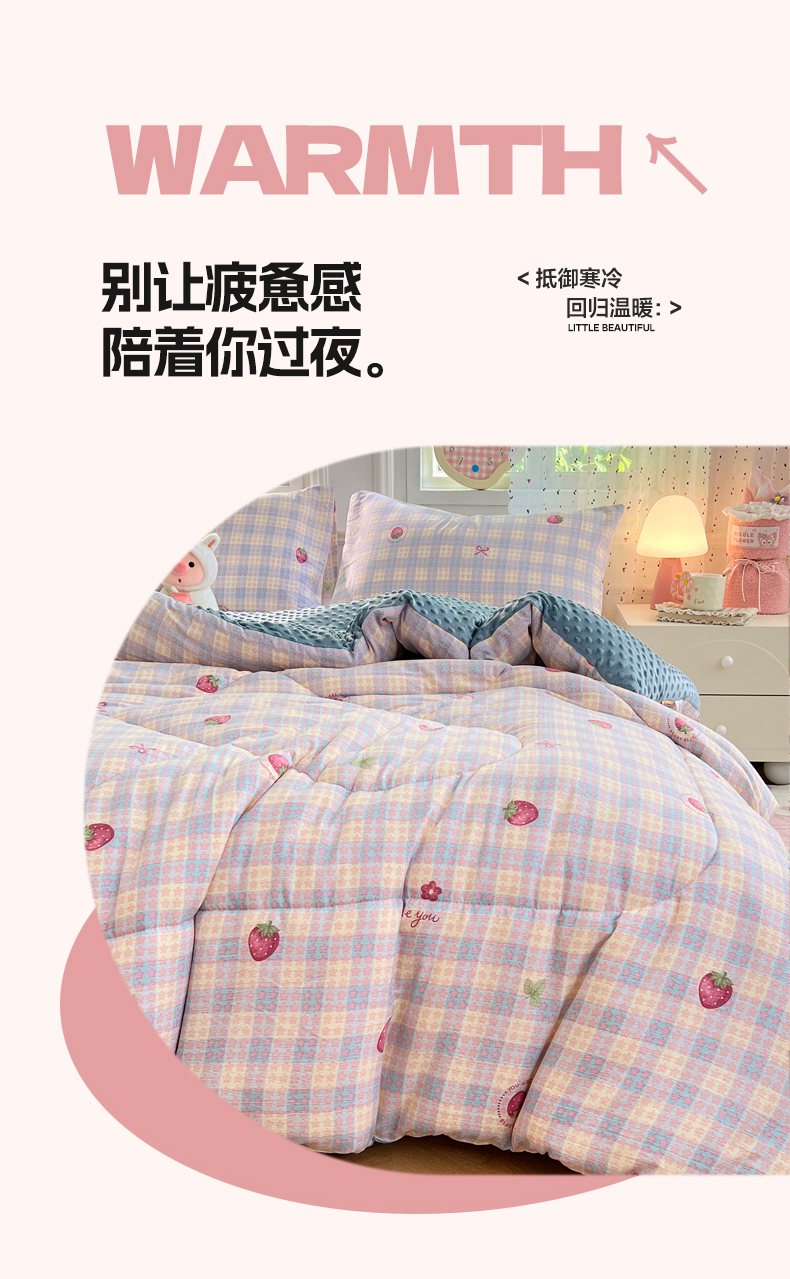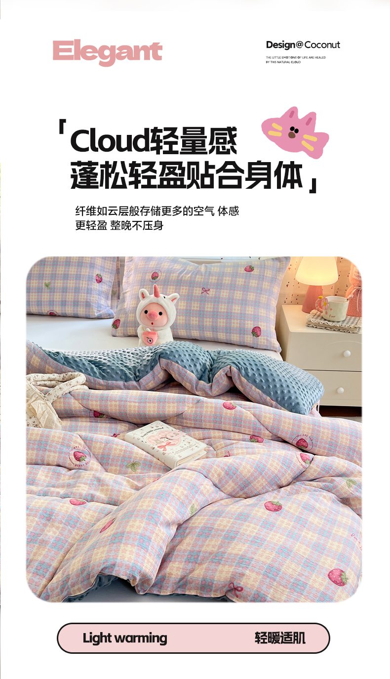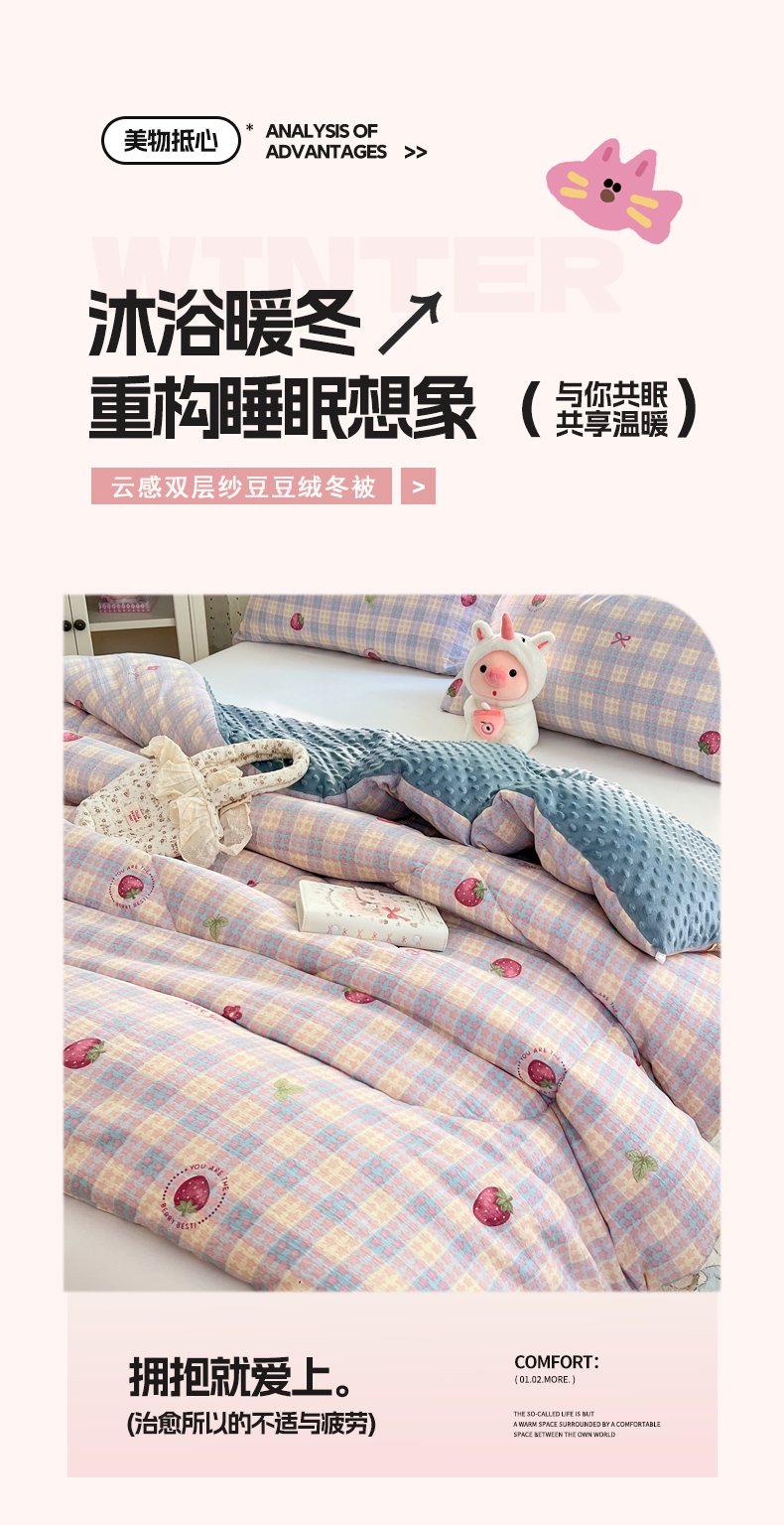 • 91家纺网 家纺一手货源 找家纺 VIP被业 2025新款云感棉双层纱豆豆绒冬被被子被芯 莓莓桑内