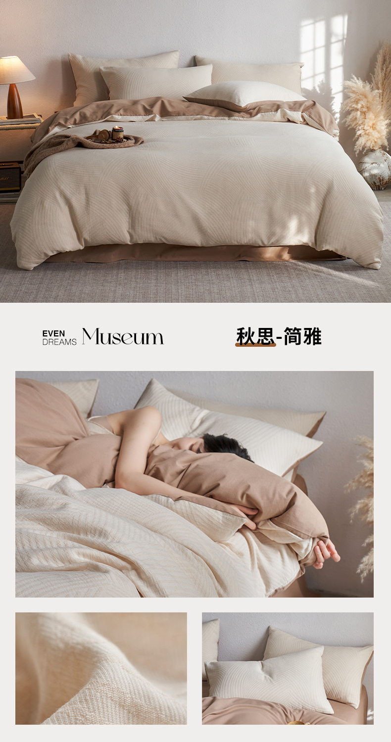 当前位置: 91家纺网 > 商品网购 > 床品套件 > 四件套 > 全棉普通四件套 > 千朵森 2025新款全棉纯棉色织提花磨毛四件套-秋思 秋思—织眠灰