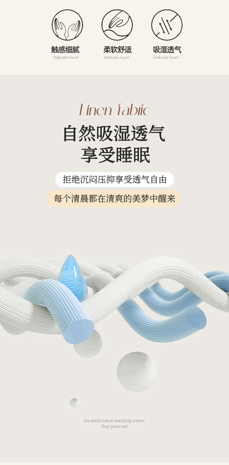 当前位置: 91家纺网 > 商品网购 > 床品套件 > 四件套 > 化纤普通四件套 > 芯贝儿 2025秋冬新款加厚全m花边m麻复古风亚麻皱皱双层纱水洗m四件套 幽兰拂晓