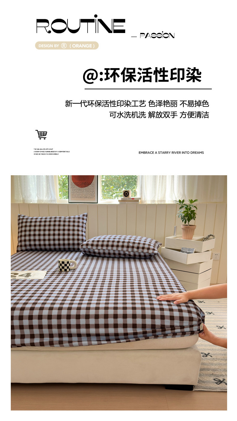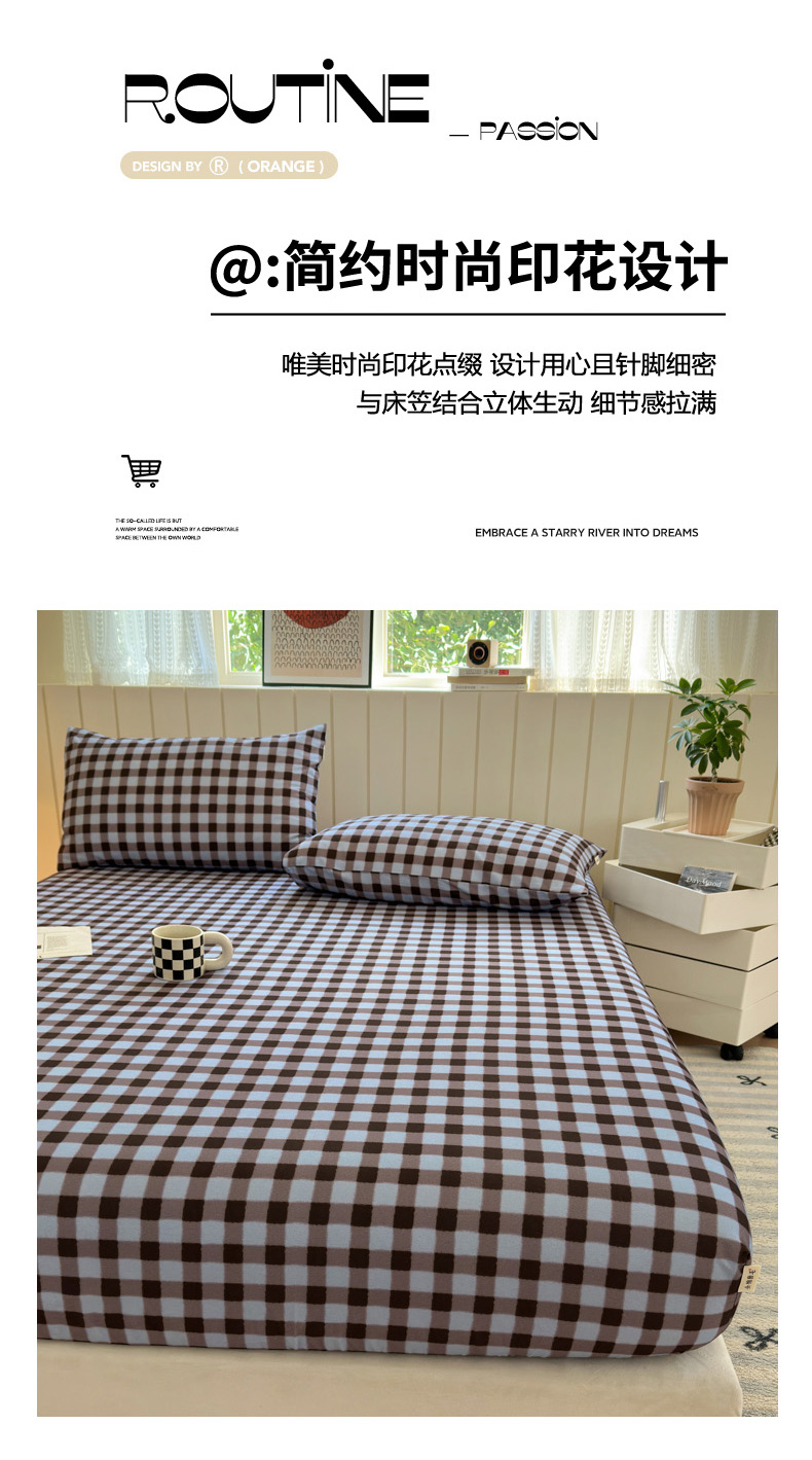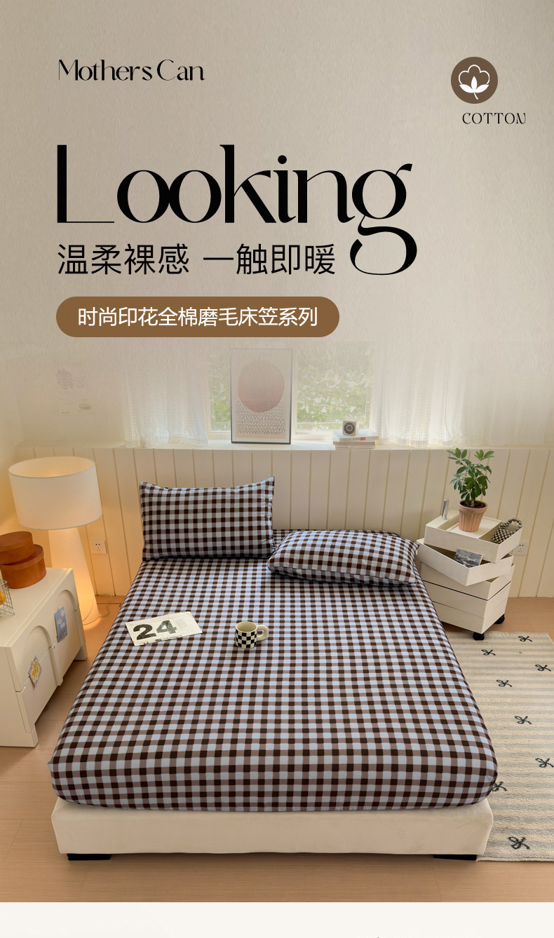 如意朵 2025新款时尚印花全棉加厚磨毛床笠 可可-蓝