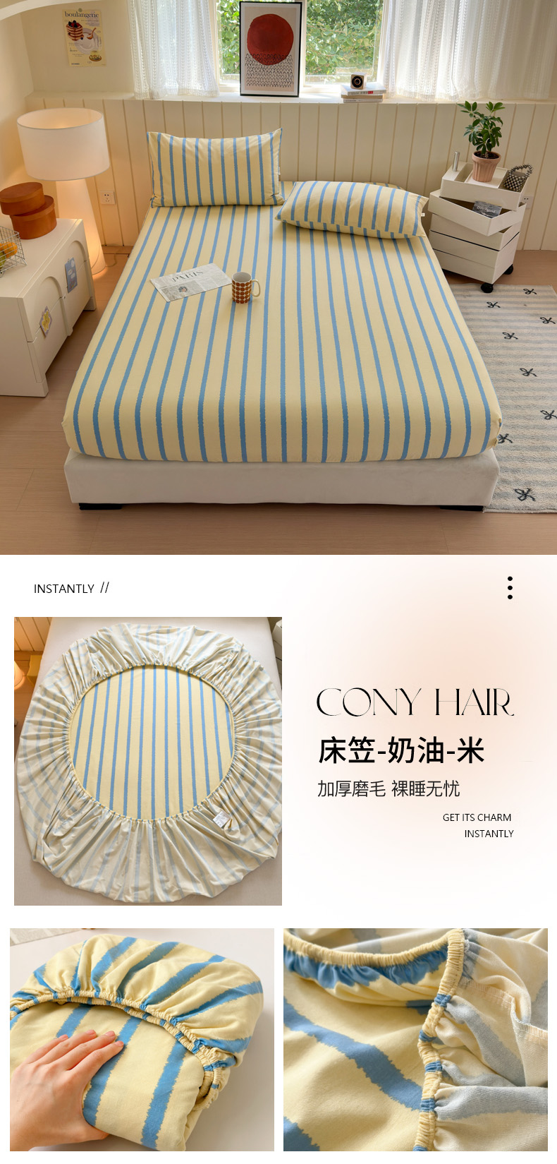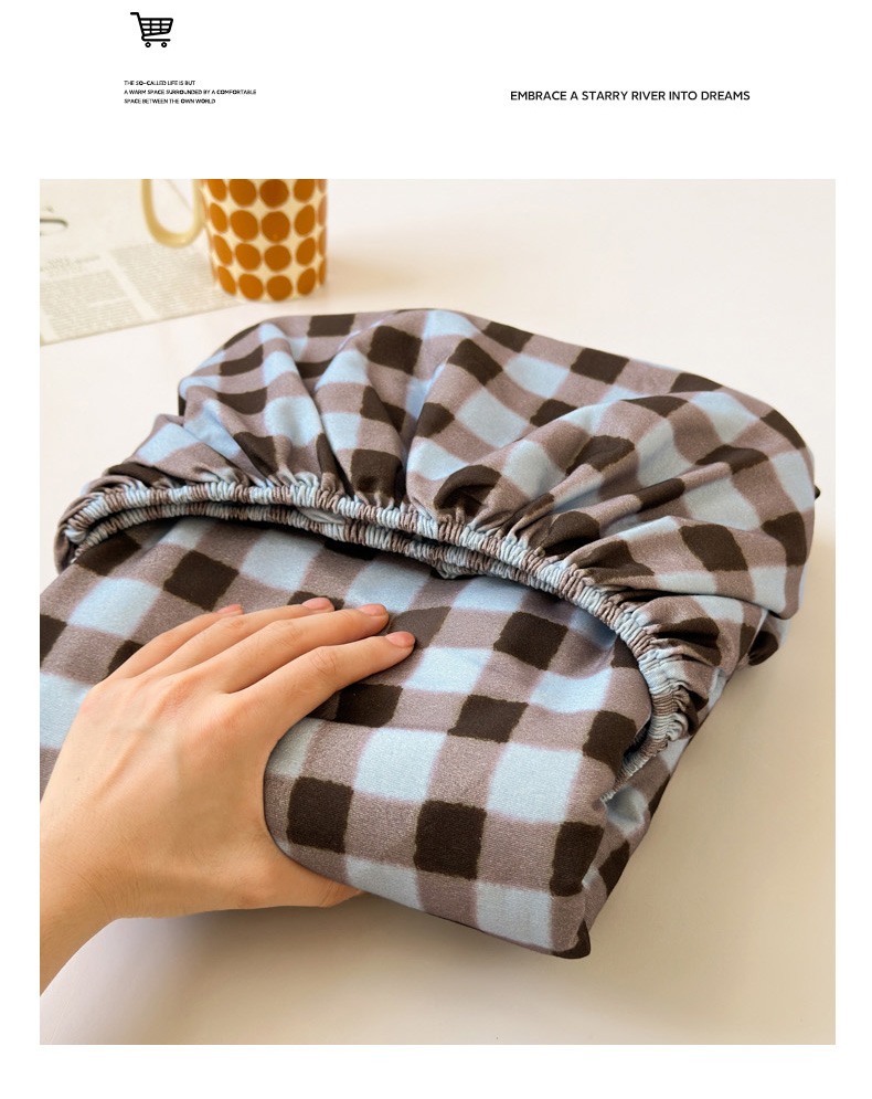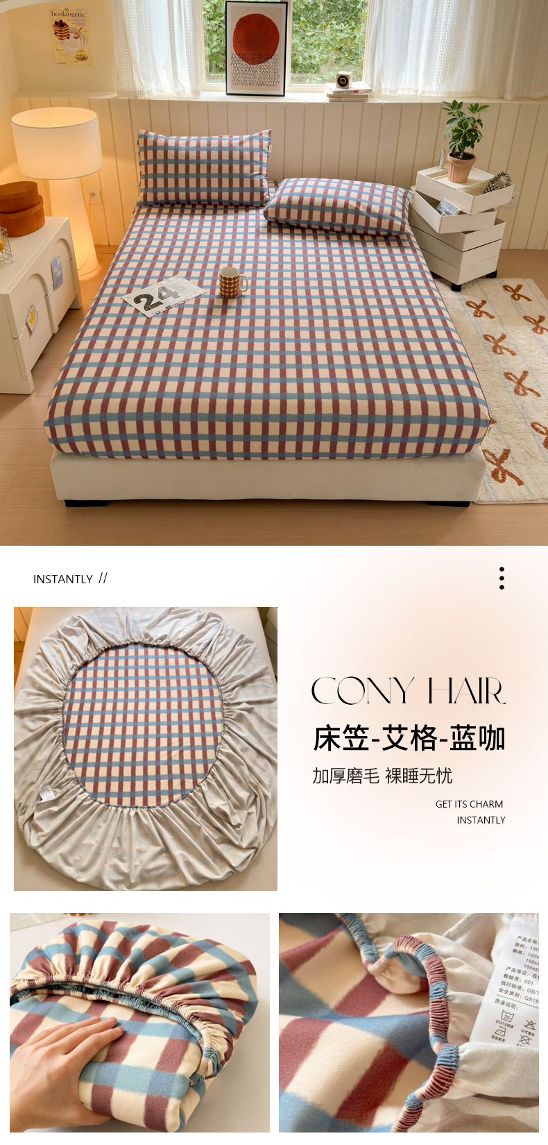 如意朵 2025新款时尚印花全棉加厚磨毛床笠 可可-蓝