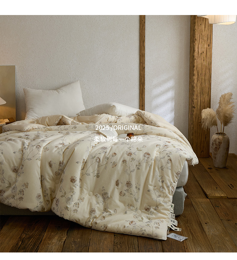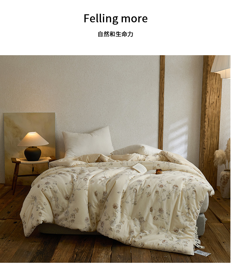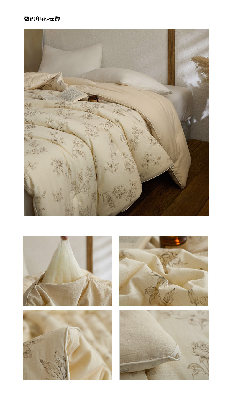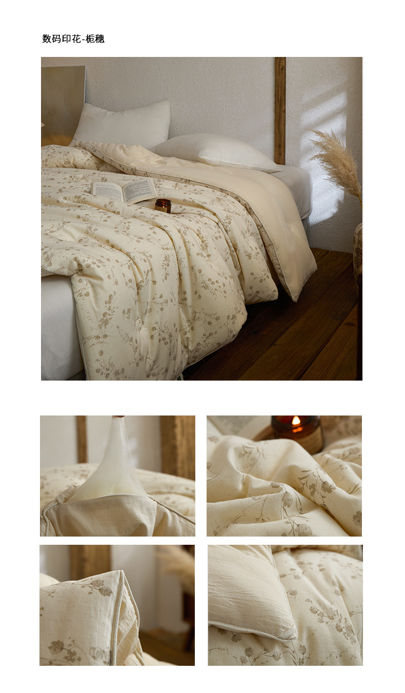 商品名称:禧禾 2025新款A类诧寂风棉麻大豆色织提花数码印花春秋冬被被子被芯 栀穗-印花