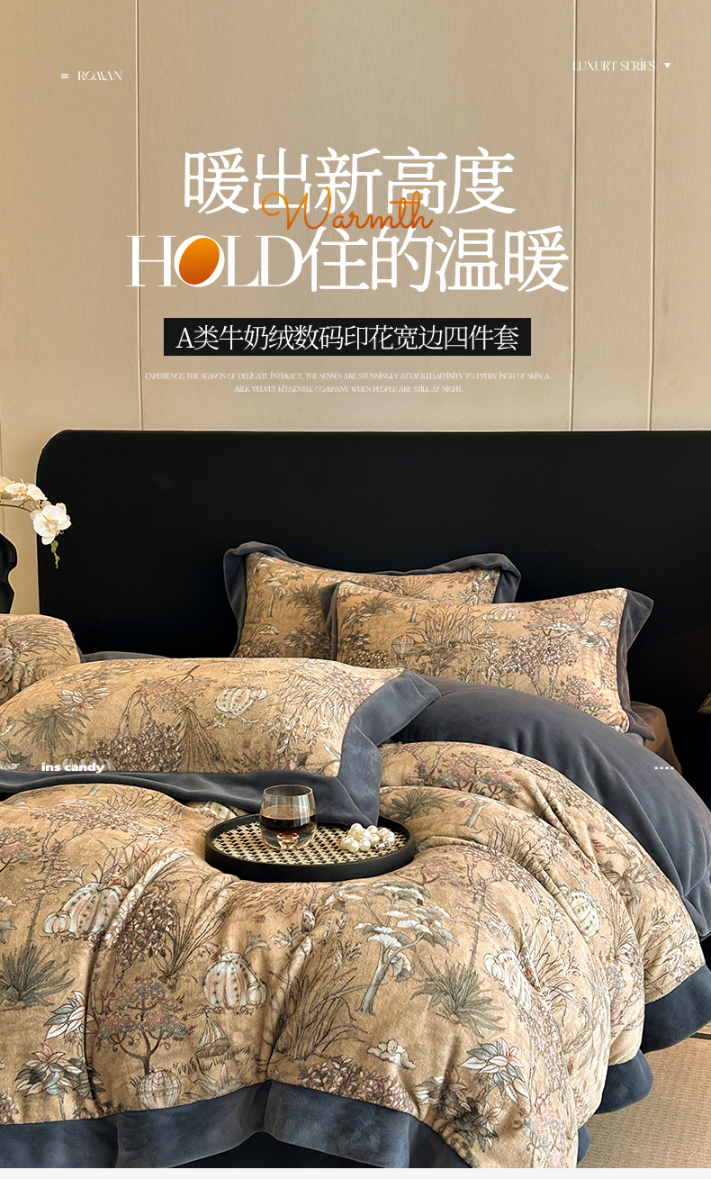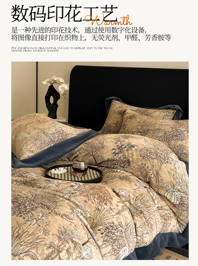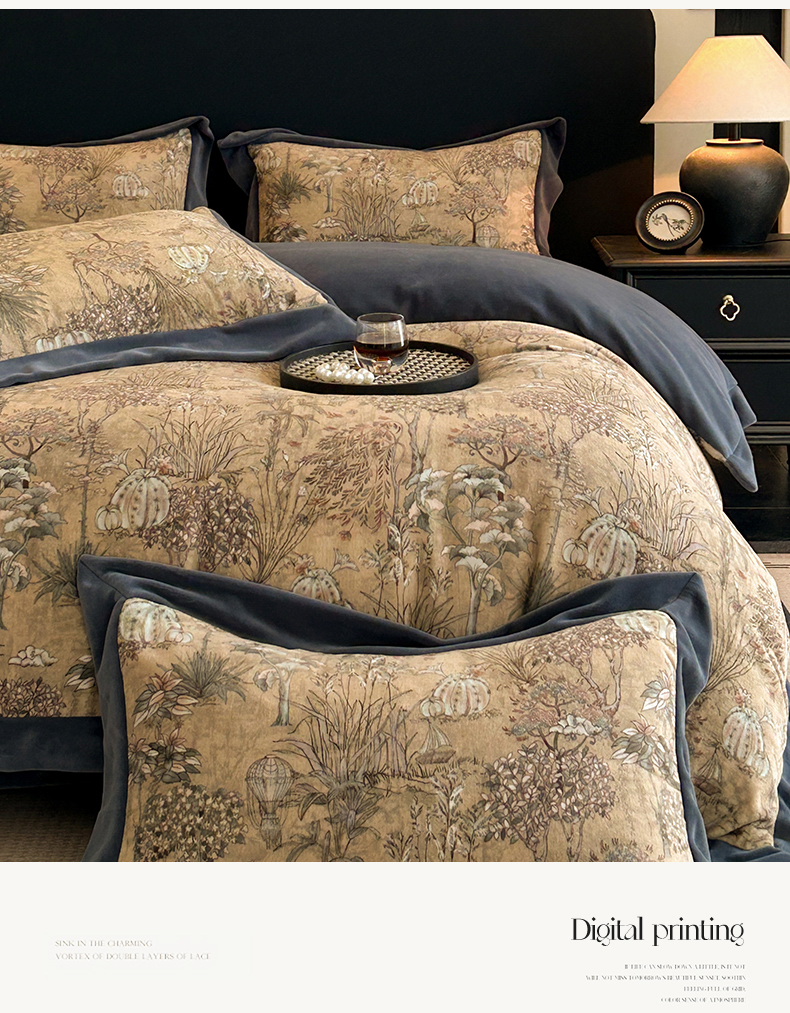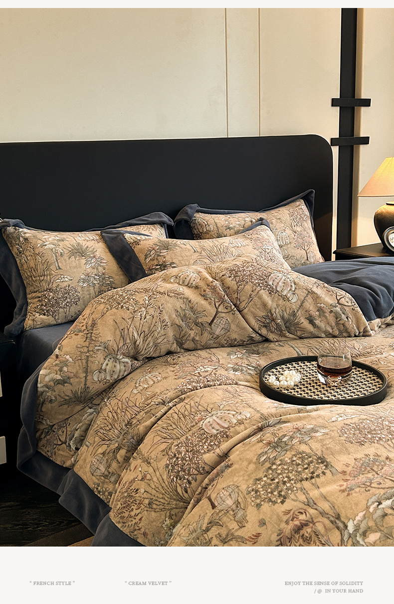 当前位置: 91家纺网 > 商品网购 > 床品套件 > 四件套 > 牛奶绒四件套 > 笙意家纺 2025新款加厚牛奶绒法式数码印花宽边四件套 菲尔德