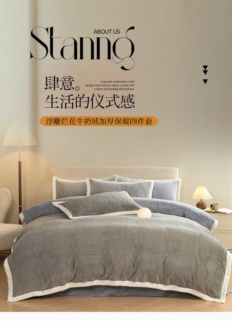 当前位置: 91家纺网 > 商品网购 > 床品套件 > 四件套 > 牛奶绒四件套 > 眠博士 2025新款洛克款浮雕烂花牛奶绒加厚保暖四件套 洛克款-奇迹钛灰