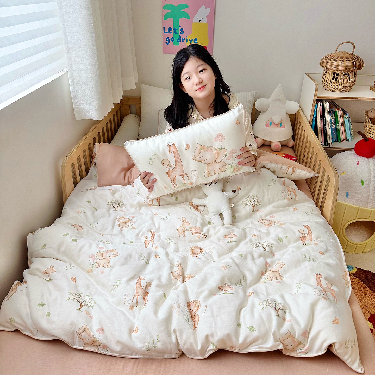 当前位置: 91家纺网 > 商品网购 > 床品套件 > 三件套 > 萌宝家纺 2025新款母婴A类全棉双层纱儿童被套纯棉纱布三件套 摇篮兔