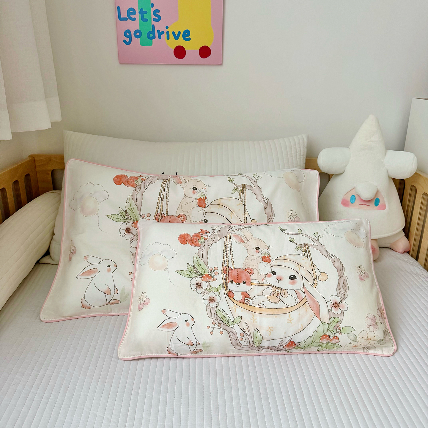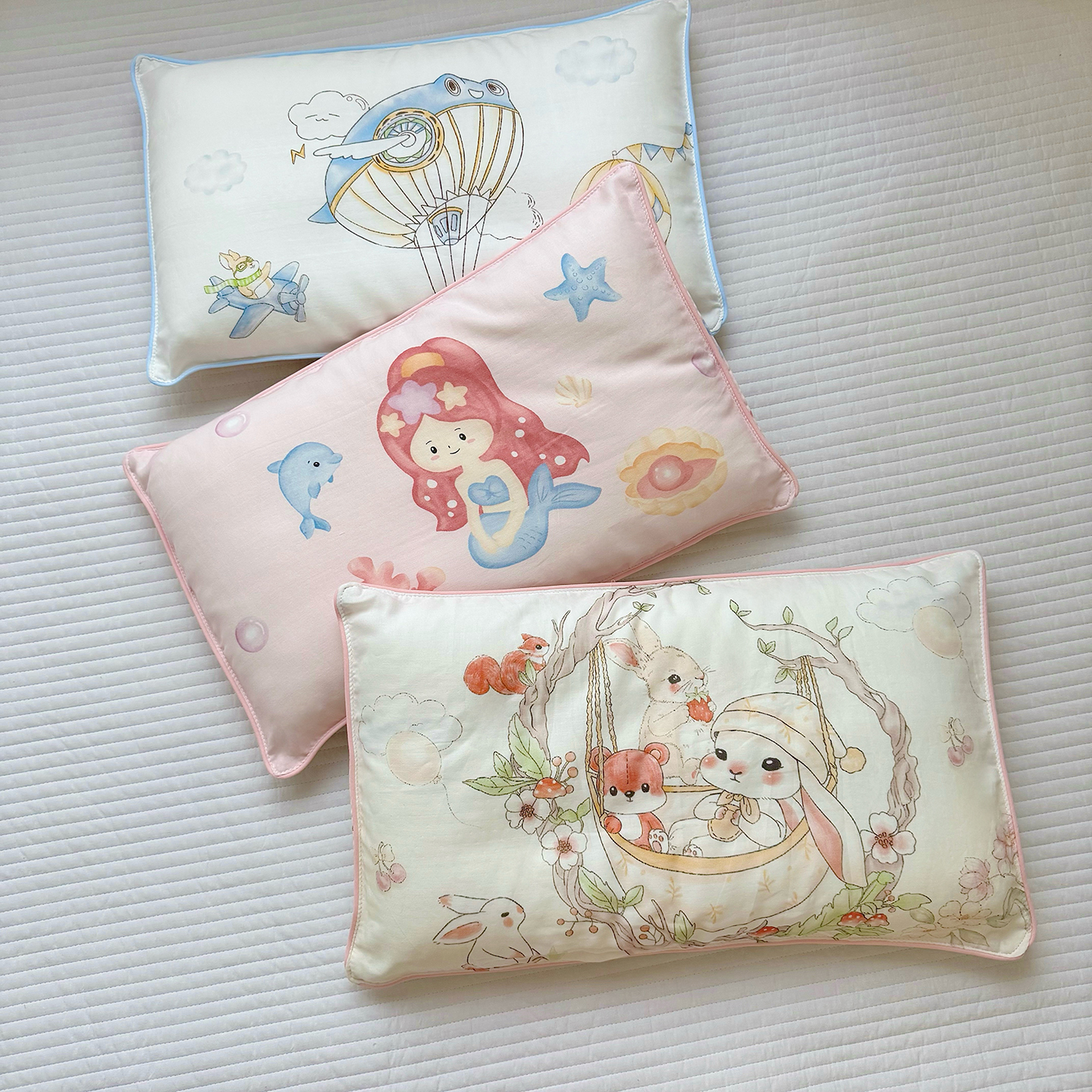 (总)萌宝家纺 2025新款A类大版全棉儿童双层纱枕套纯棉宝宝纱布枕头,动物园,美人鱼,热气球,晚安熊,小恐龙,摇篮兔