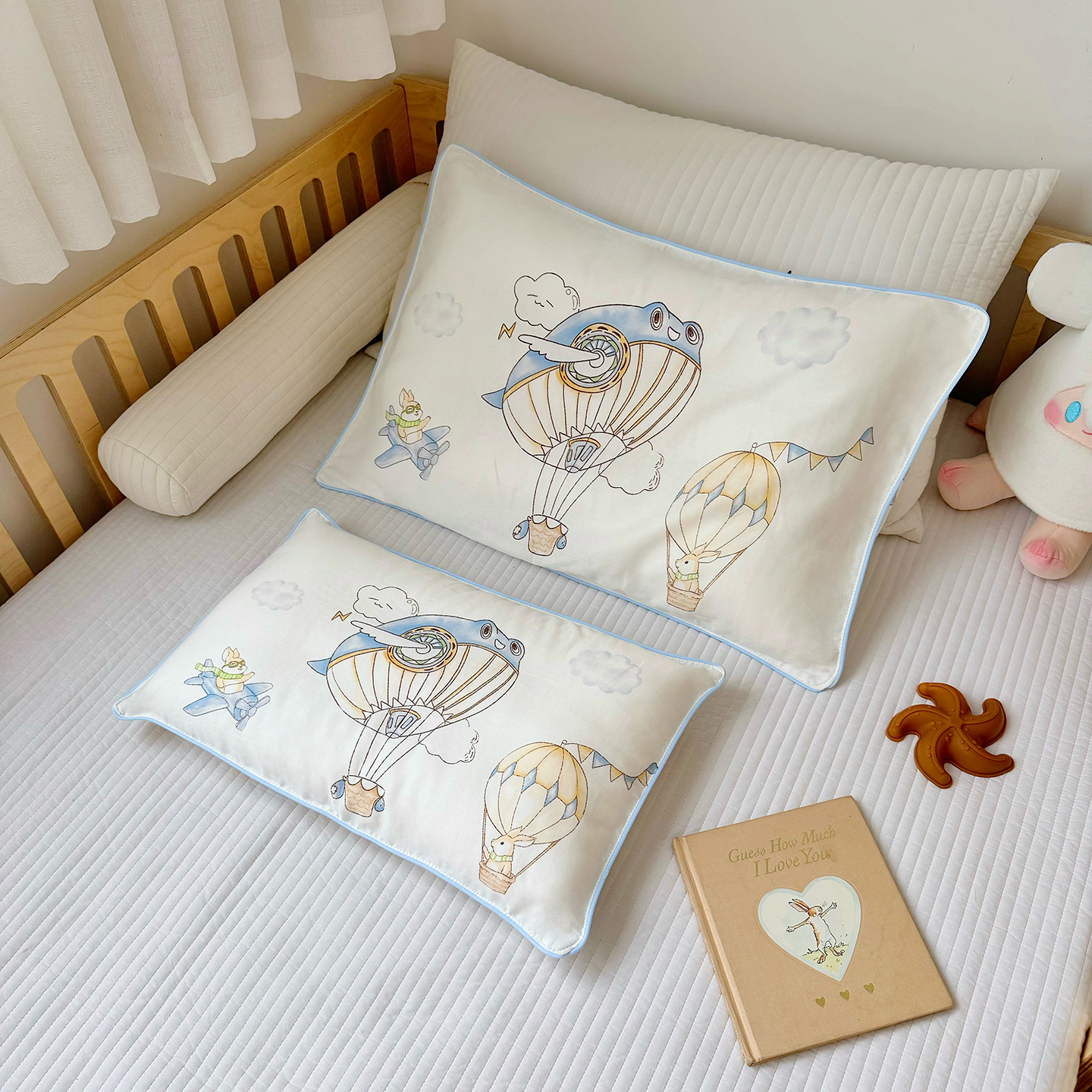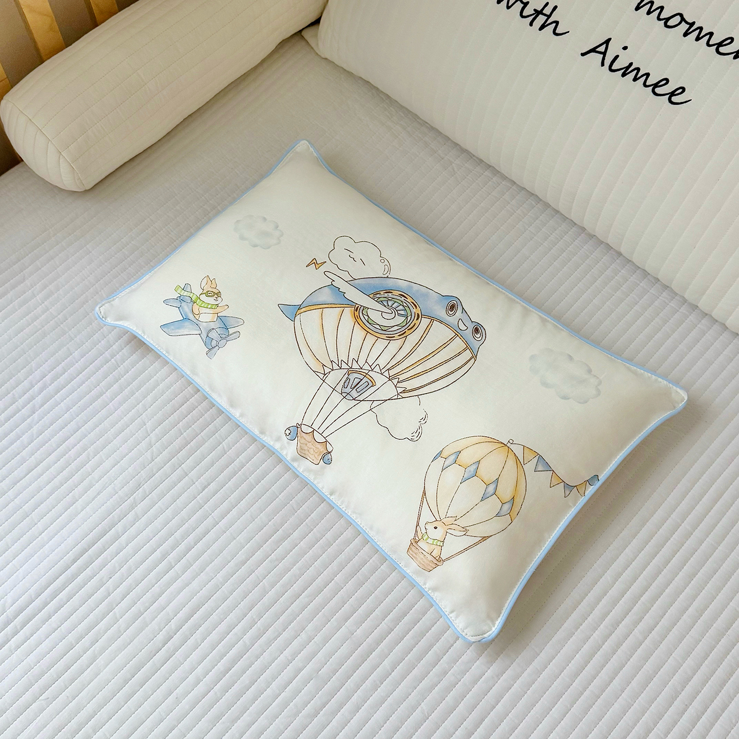 萌宝家纺 2025新款A类大版全棉儿童双层纱枕套纯棉宝宝纱布枕头 热气球