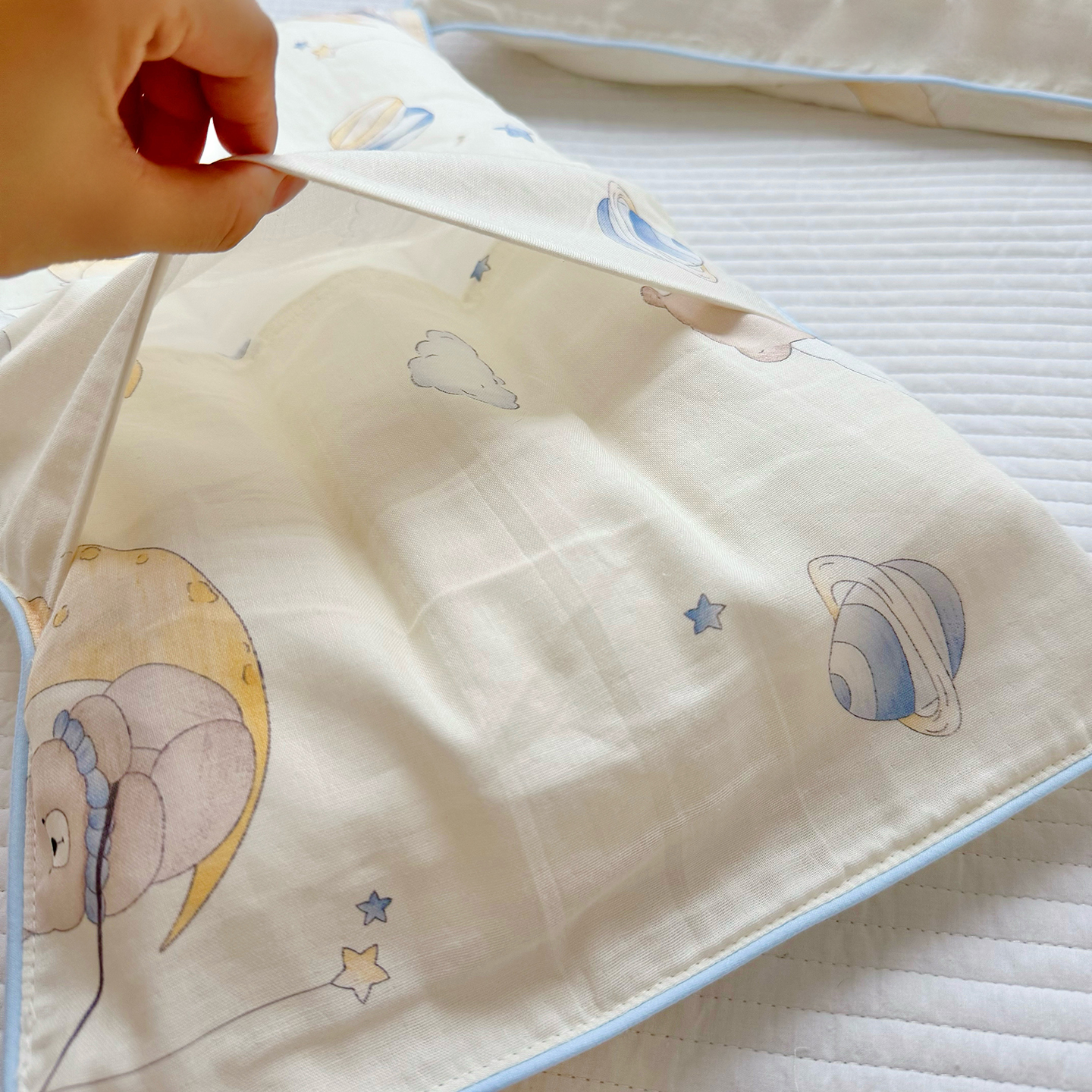 商品名称:萌宝家纺 2025新款A类大版全棉儿童双层纱枕套纯棉宝宝纱布枕头 热气球