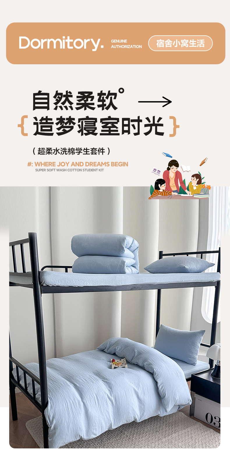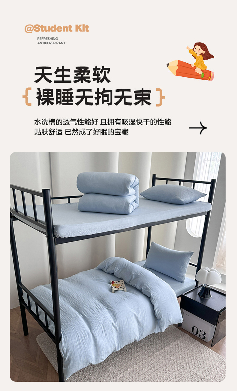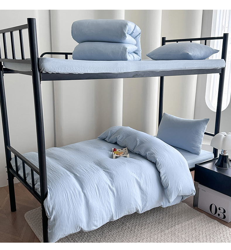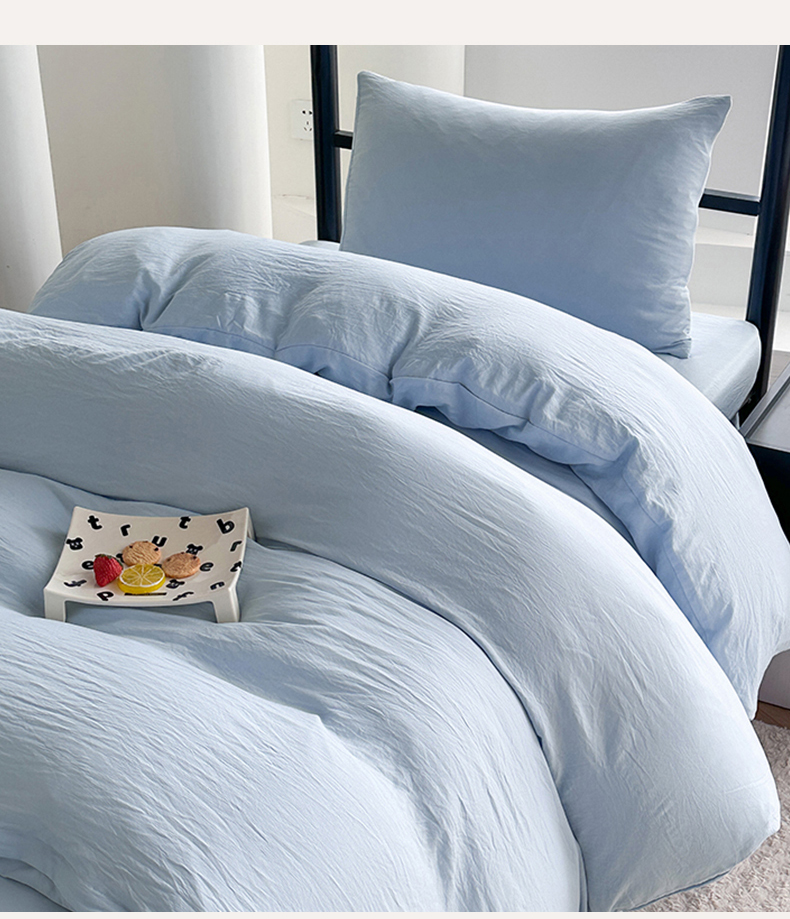 当前位置: 91家纺网 > 商品网购 > 床品套件 > 四件套 > 水洗棉四件套 > 南通菲度家纺 2025新款超柔皱皱水洗棉学生宿舍四件套 海盐蓝