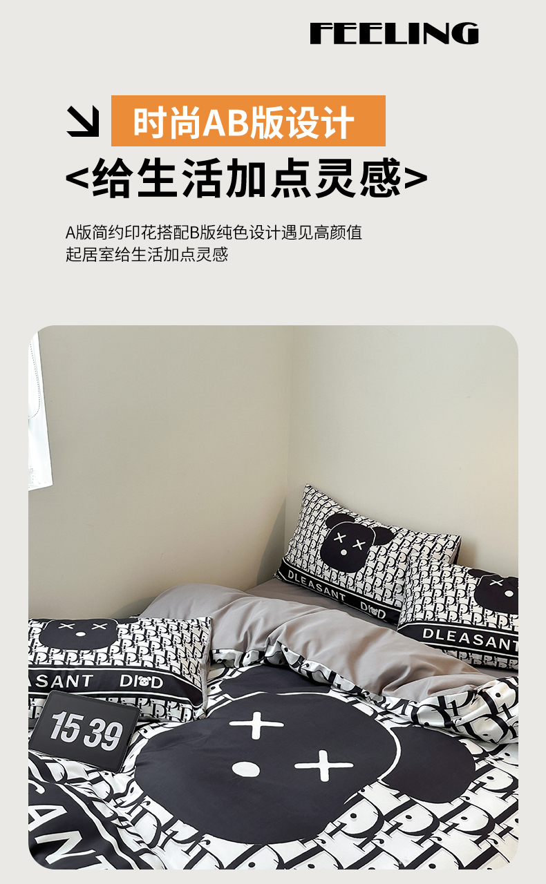 商品名称:摩卡(乐趣) 2025新款现代简约网红款四季棉四件套 黑白迪