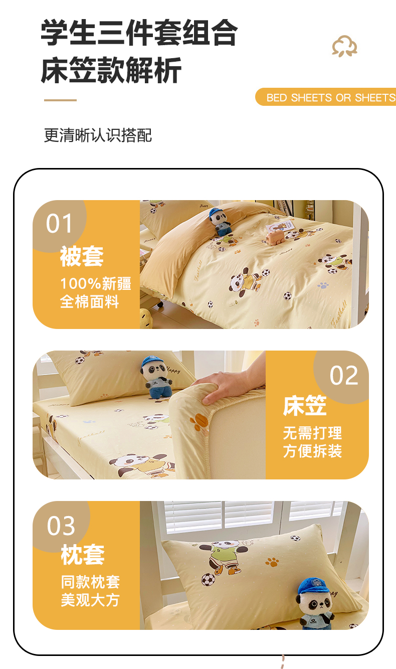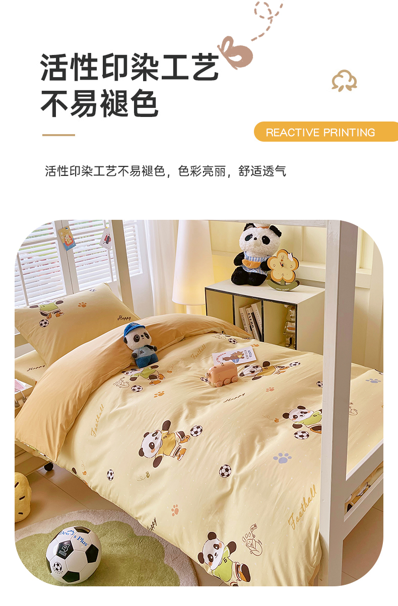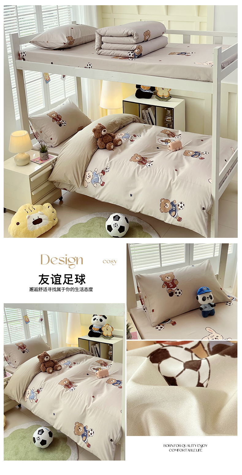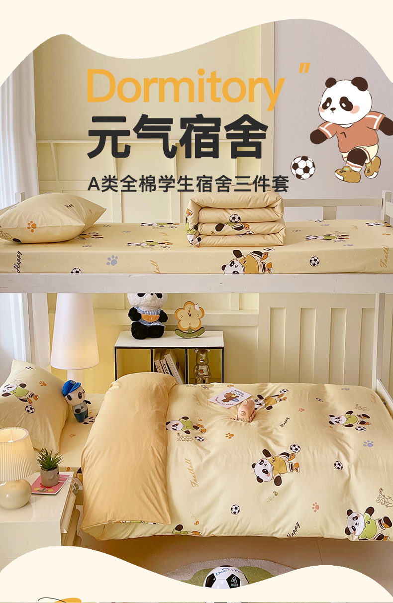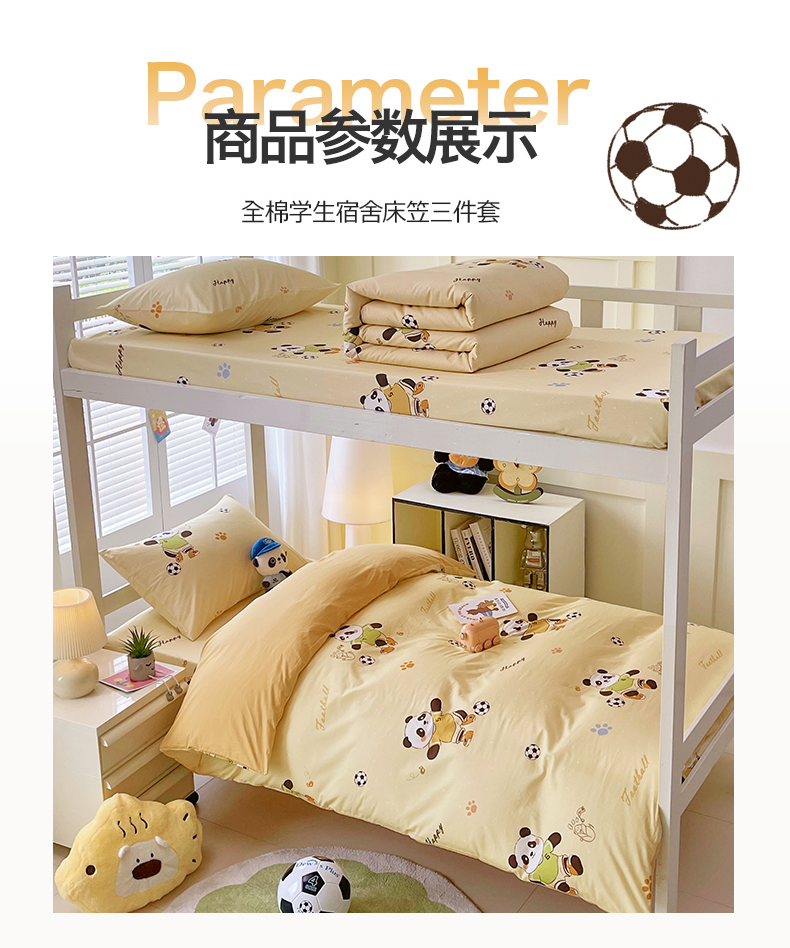 当前位置: 91家纺网 > 商品网购 > 床品套件 > 三件套 > 金鑫汇家纺 2025新款A类全棉纯棉印花学生床宿舍上下铺三件套 足球争霸赛-黄