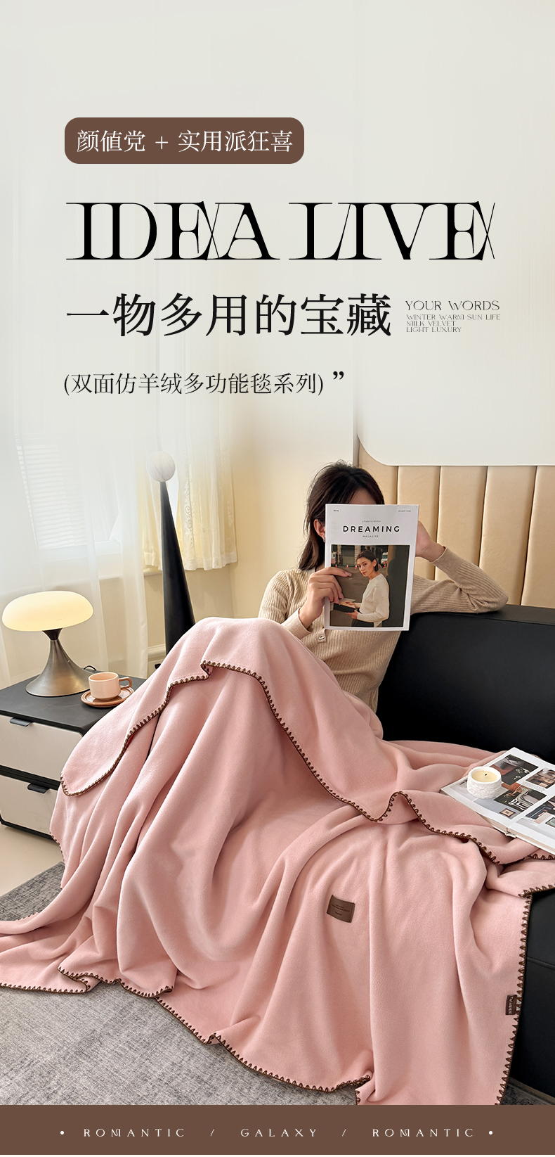 (总)格真 2025新款高克重双面仿羊绒多功能毯毛毯盖毯沙发毯午睡毯披肩毯-系列二,美拉德,蓝宝石,摩卡,气质灰,浅粉,香芋紫