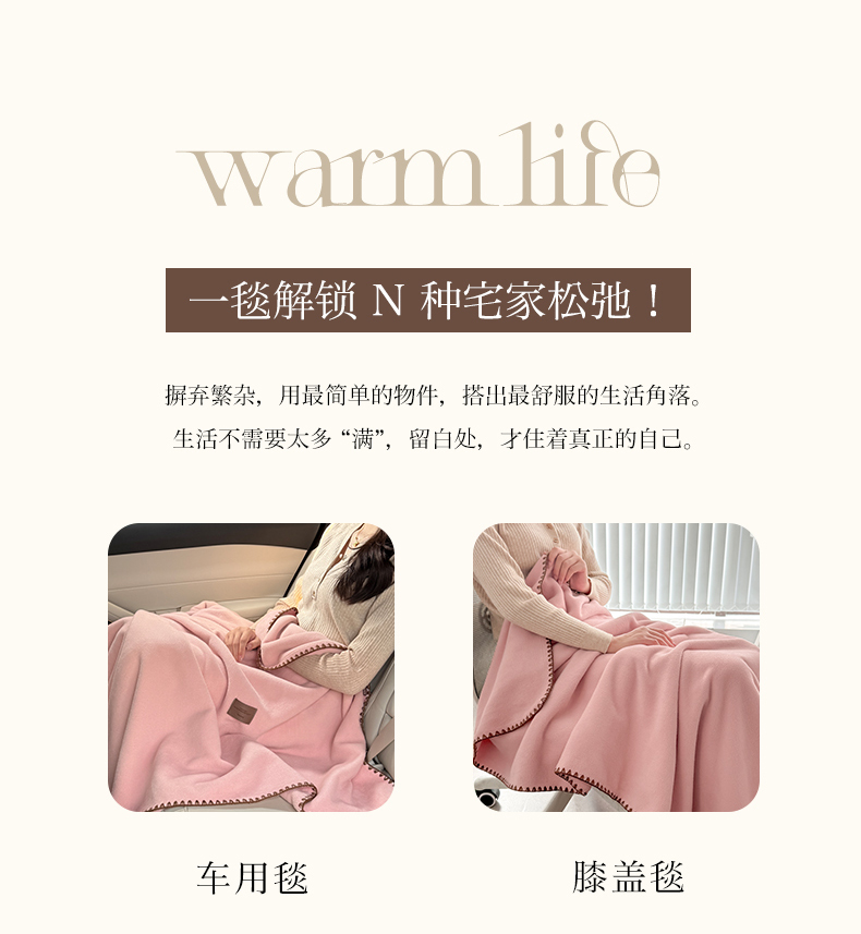 格真 2025新款双面仿羊绒多功能毯毛毯毯子 浅粉