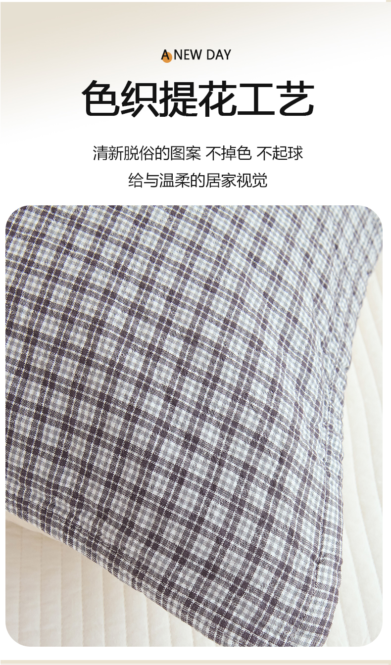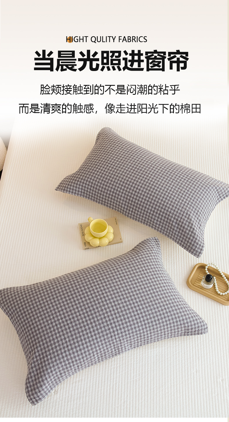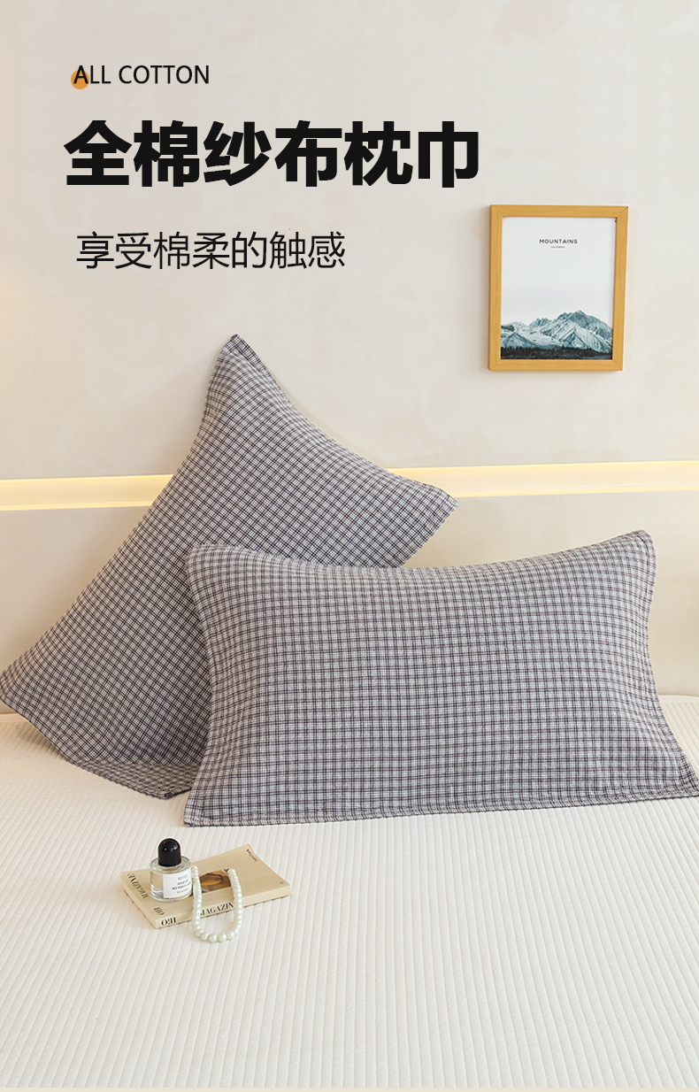 棠薇家纺 2025新款 枕巾纯棉纱布水洗全棉纱布纯棉耐脏吸汗透气预缩水 小格灰