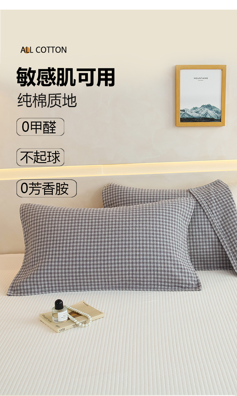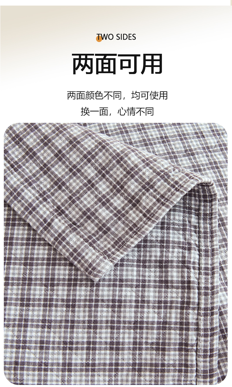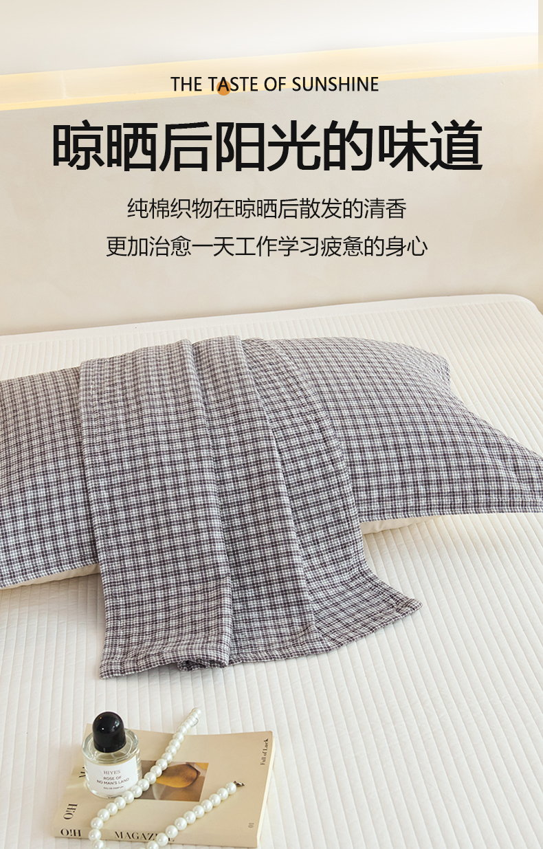 棠薇家纺 2025新款 枕巾纯棉纱布水洗全棉纱布纯棉耐脏吸汗透气预缩水 小格灰