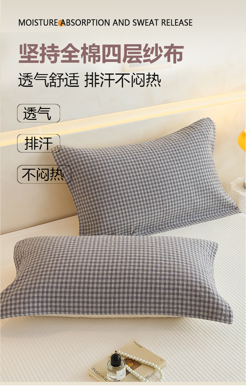 商品名称:棠薇家纺 2025新款 枕巾纯棉纱布水洗全棉纱布纯棉耐脏吸汗透气预缩水 小格灰