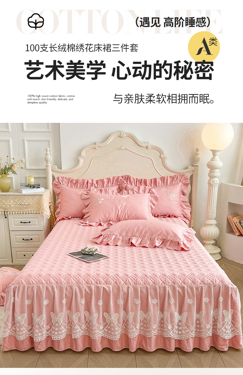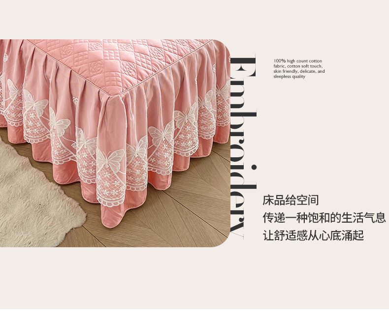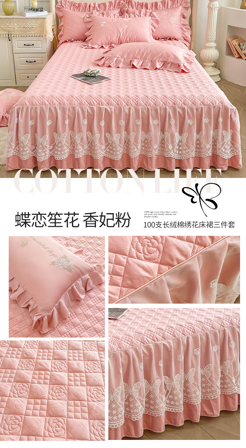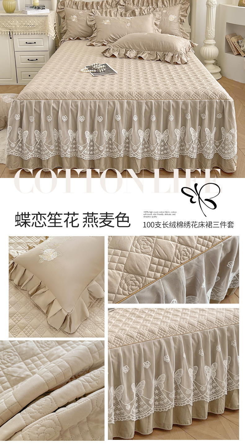 当前位置: 91家纺网 > 商品网购 > 床品套件 > 三件套 > 宜凡家纺 2025新款长绒棉绣花夹棉床裙三件套--蝶恋笙花系列 蝶恋笙花 燕麦色