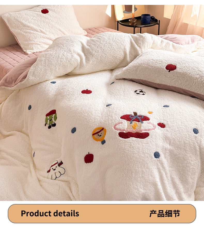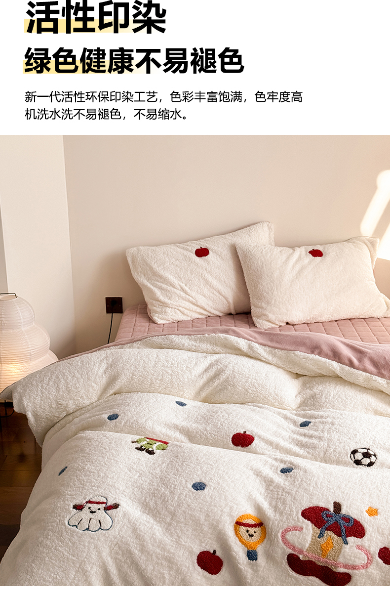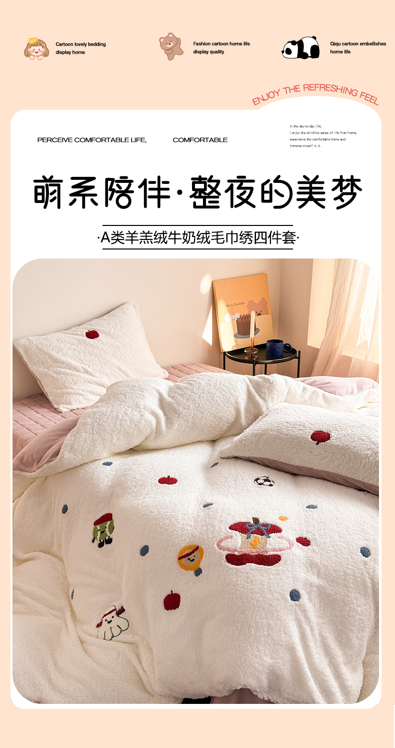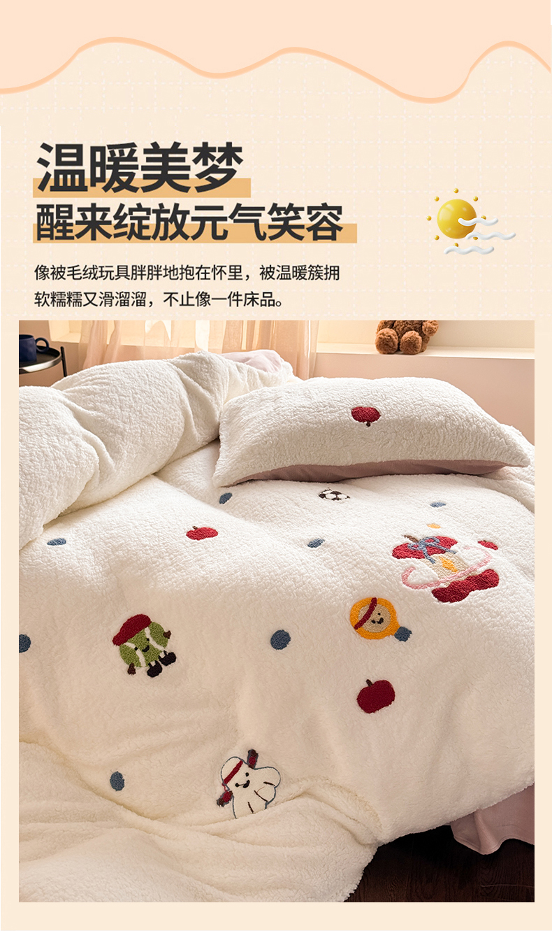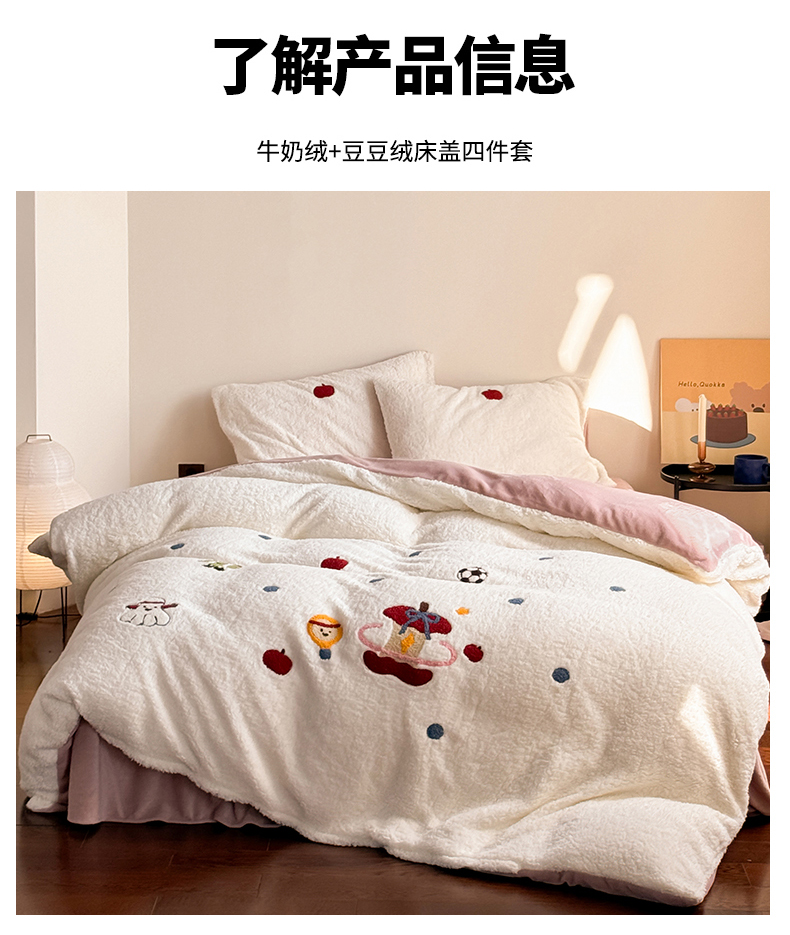 当前位置: 91家纺网 > 商品网购 > 床品套件 > 四件套 > 牛奶绒四件套 > TT.one 塔塔家居 2025新款羊羔绒牛奶绒暖绵绵毛巾绣床单床裙床盖款四件套 苹果摇摇乐·白