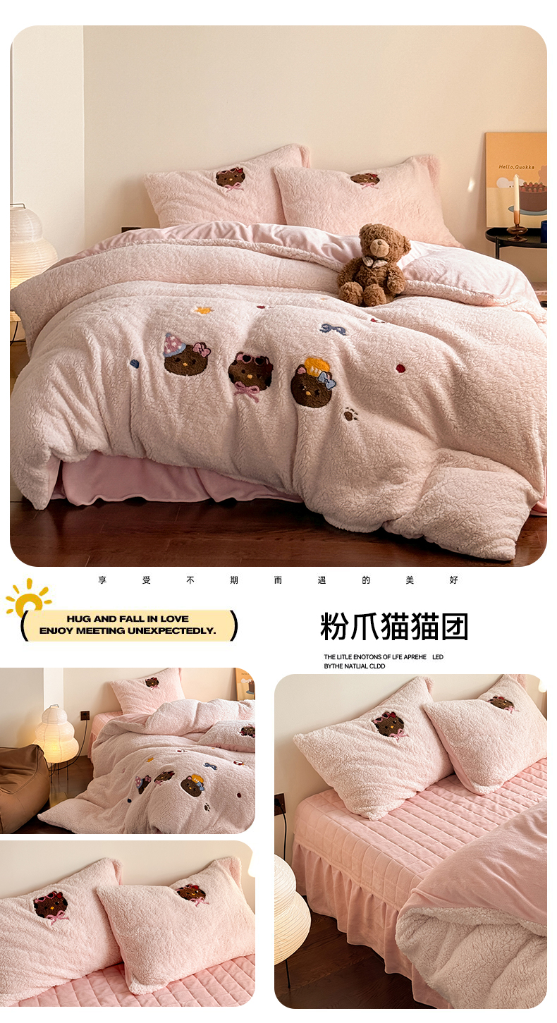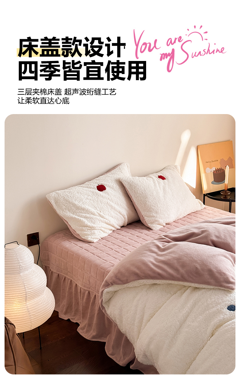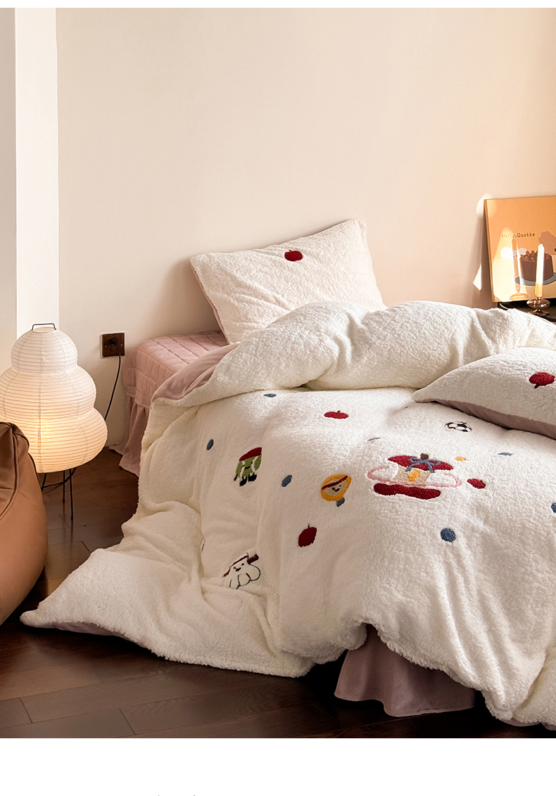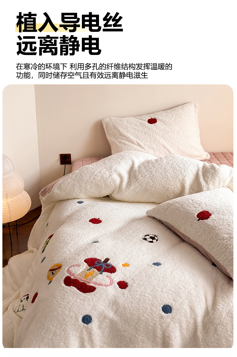 当前位置: 91家纺网 > 商品网购 > 床品套件 > 四件套 > 牛奶绒四件套 > TT.one 塔塔家居 2025新款羊羔绒牛奶绒暖绵绵毛巾绣床单床裙床盖款四件套 苹果摇摇乐·白