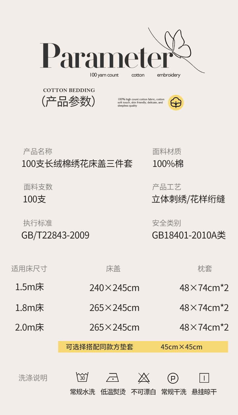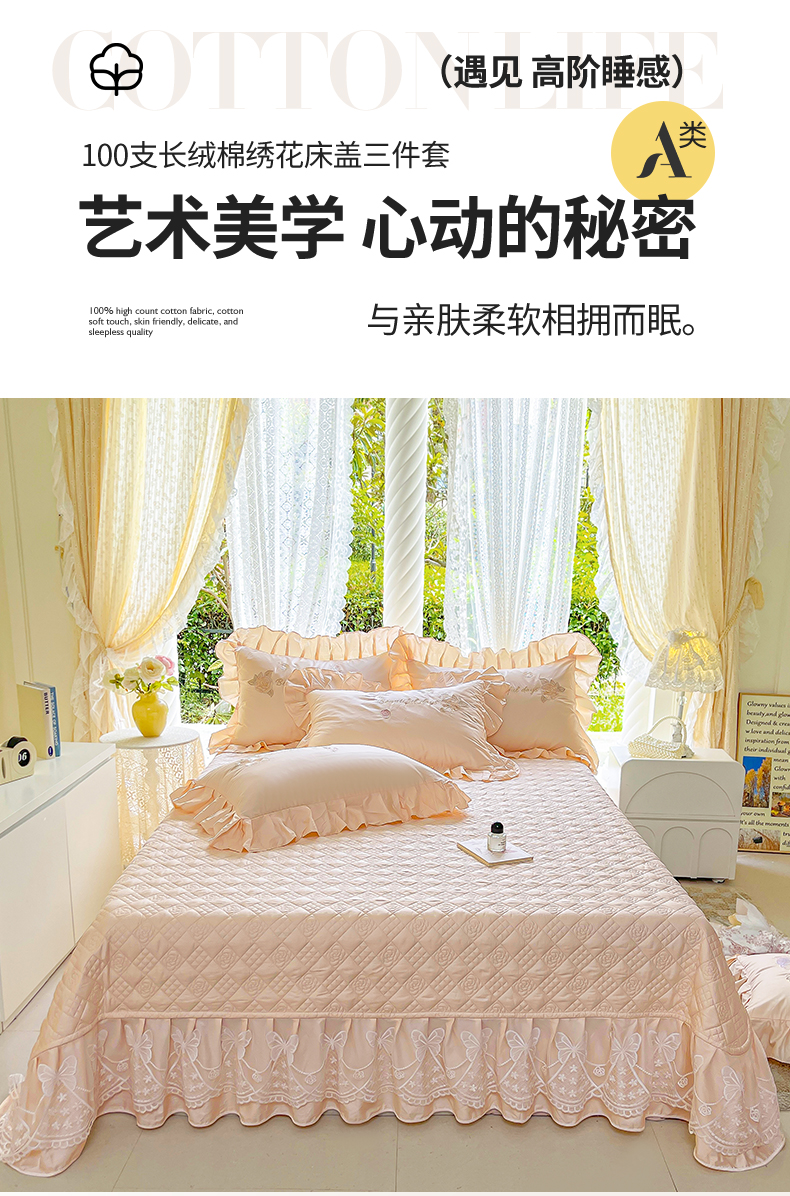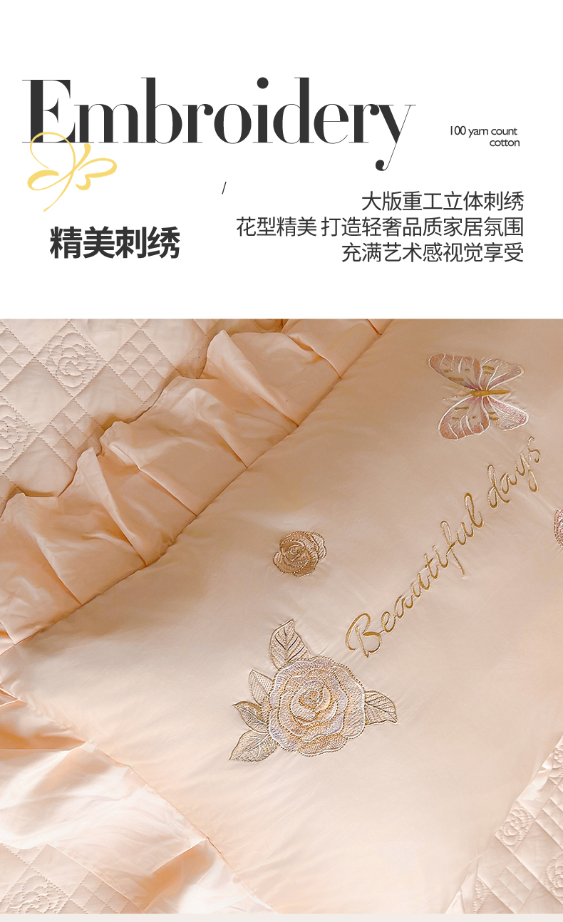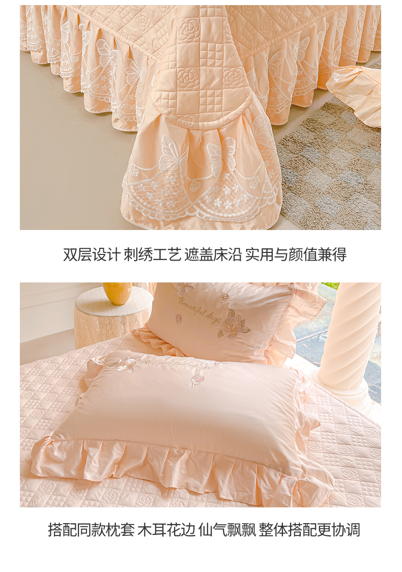 商品名称:(总)宜凡家纺 2025新款长绒棉绣花夹棉床盖三件套--蝶恋笙花系列