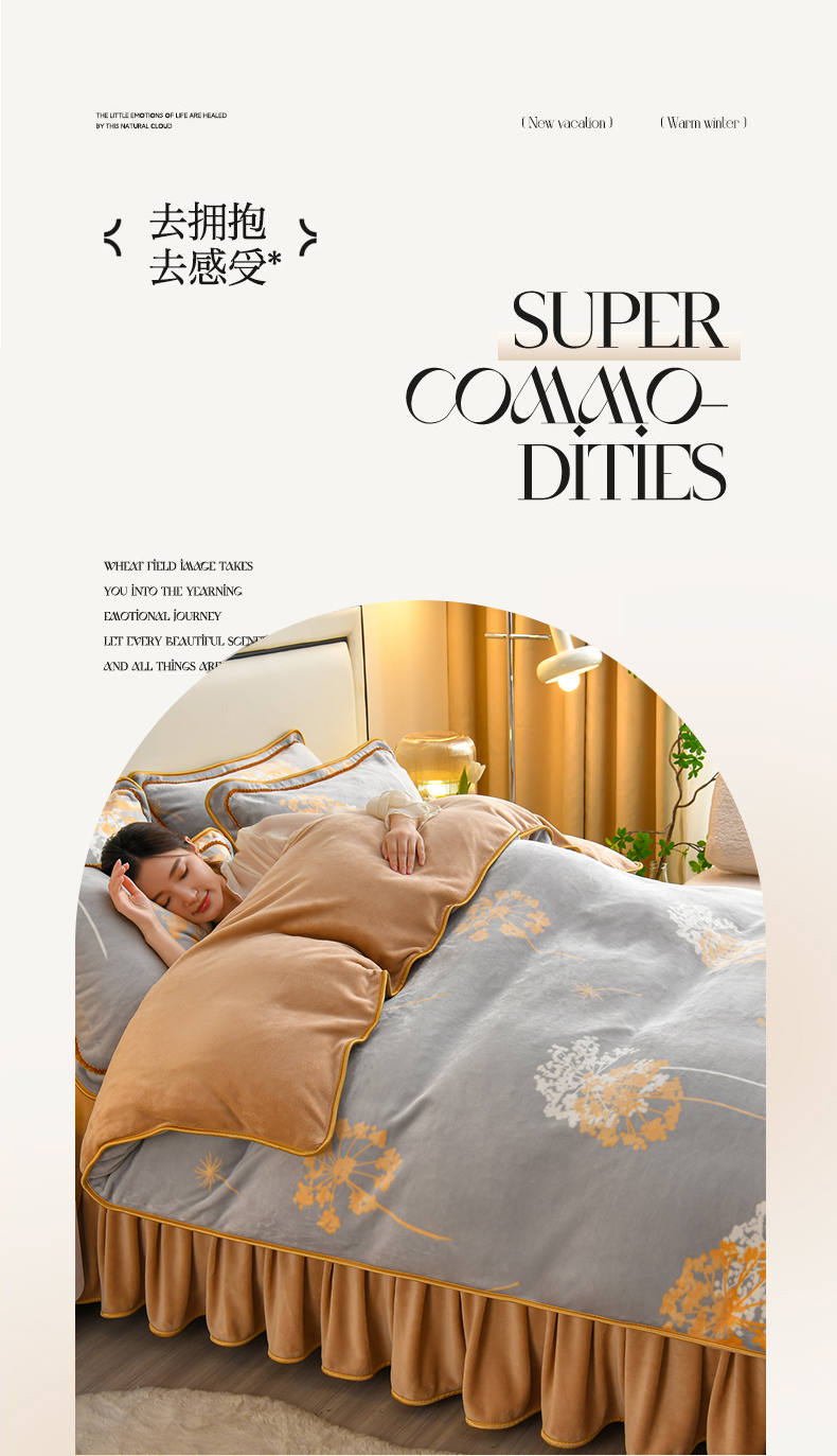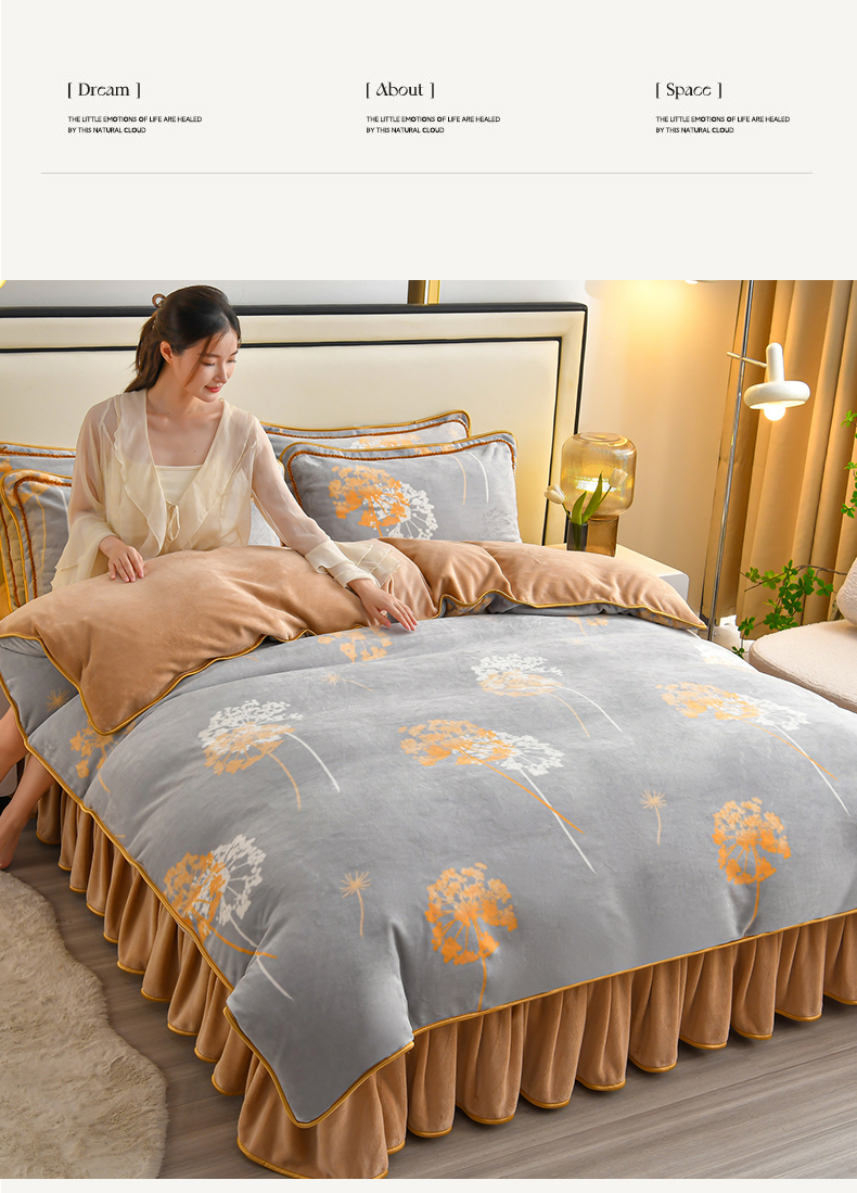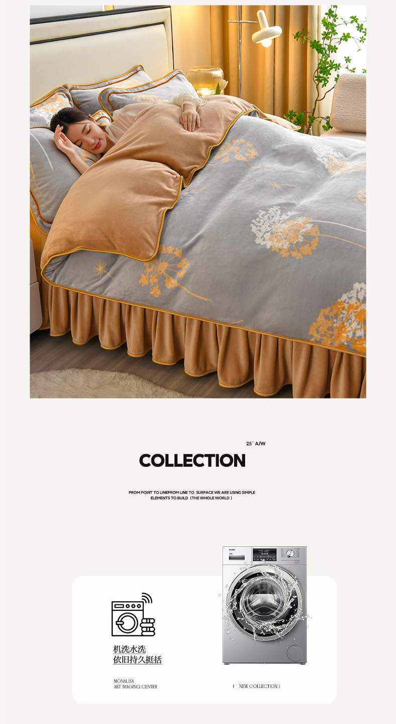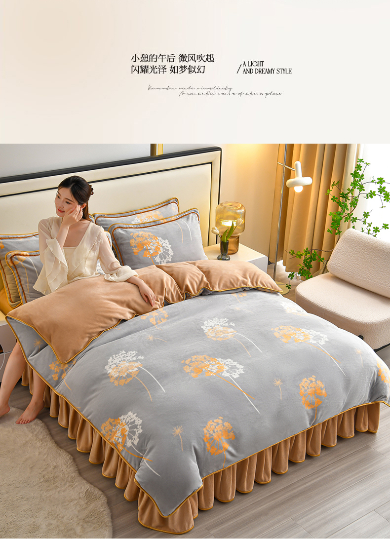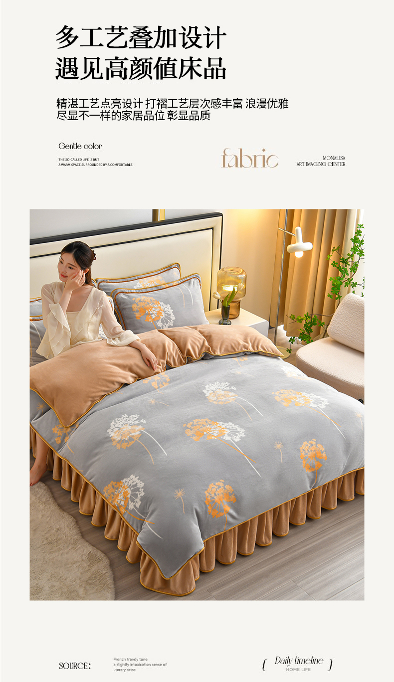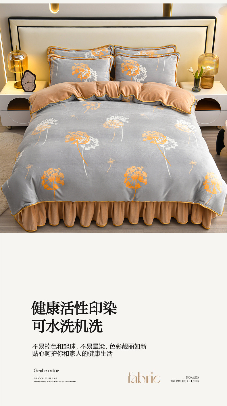 (总)橘姿 2025新款8-9斤床裙款牛奶绒四件套金貂绒法兰绒宝宝绒,荷塘月色,简约时尚,静若幽香,乐薇花园,鹿之恋,心相印,一鹿有你,时尚潮流,银杏叶语,爱恋粉,爱情花语,爱语,爱之依恋,百合情缘,发财树,富贵牡丹,花香怡人,花样情怀,欢乐兔,蓝大格,浪漫甜心,暖意,情人草灰,时尚小熊,相爱一生大红,心动萌宝,幸运树,叶叶枫情,一叶倾心,在一起
