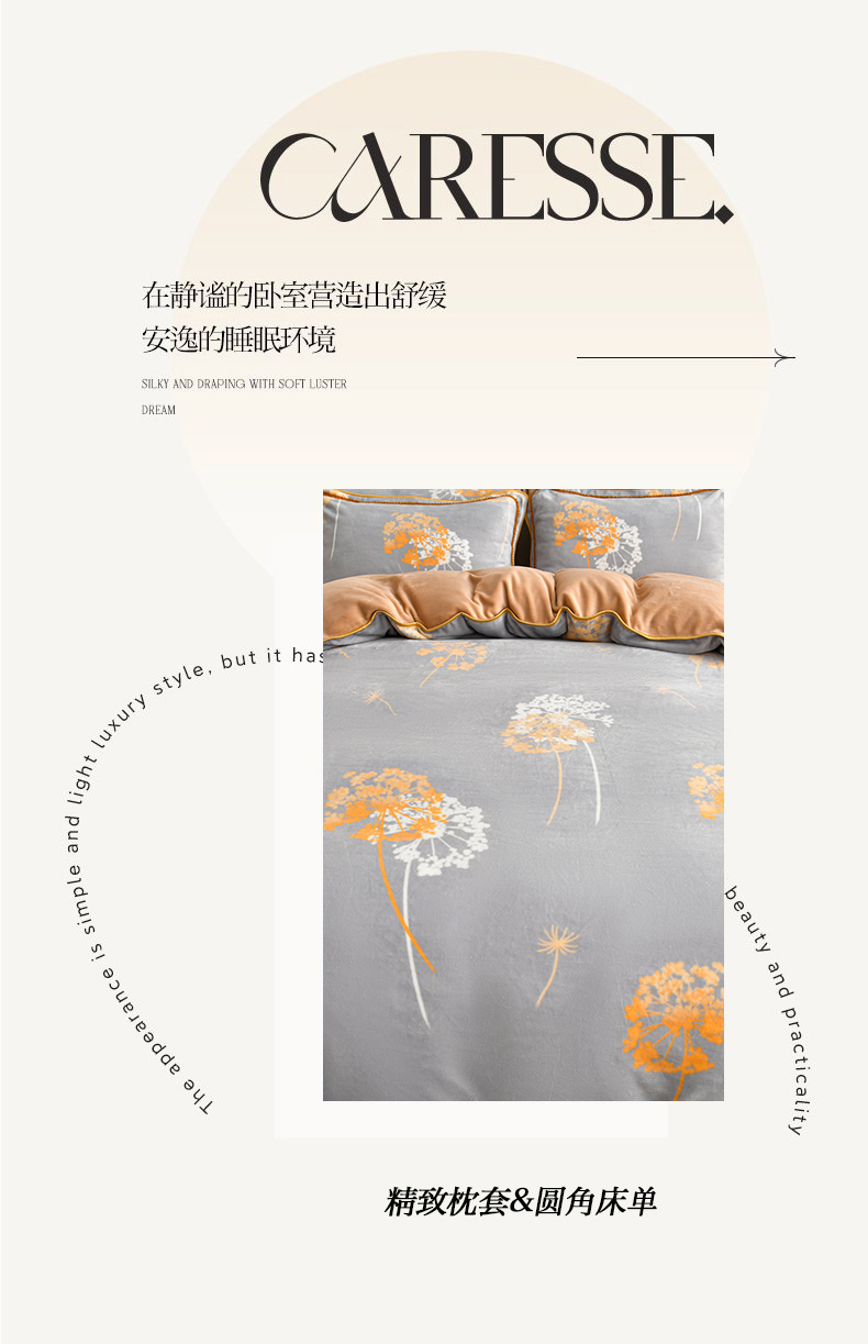 橘姿家纺 2025新款9-10斤牛奶绒四件套金貂绒四件套 浅爱