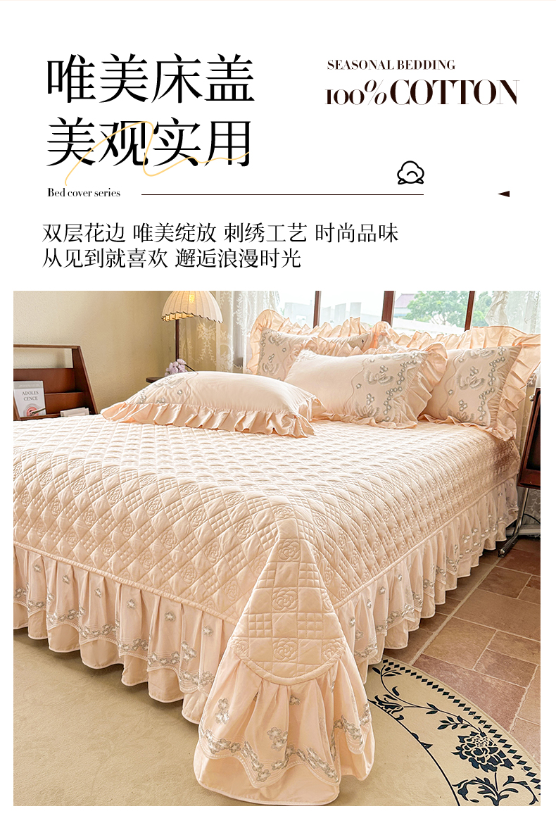 (总)宜凡家纺 2025新款全棉数码印花床裙三件套系列一,静若幽兰,浮云织梦,梦幻花园,陌上花开