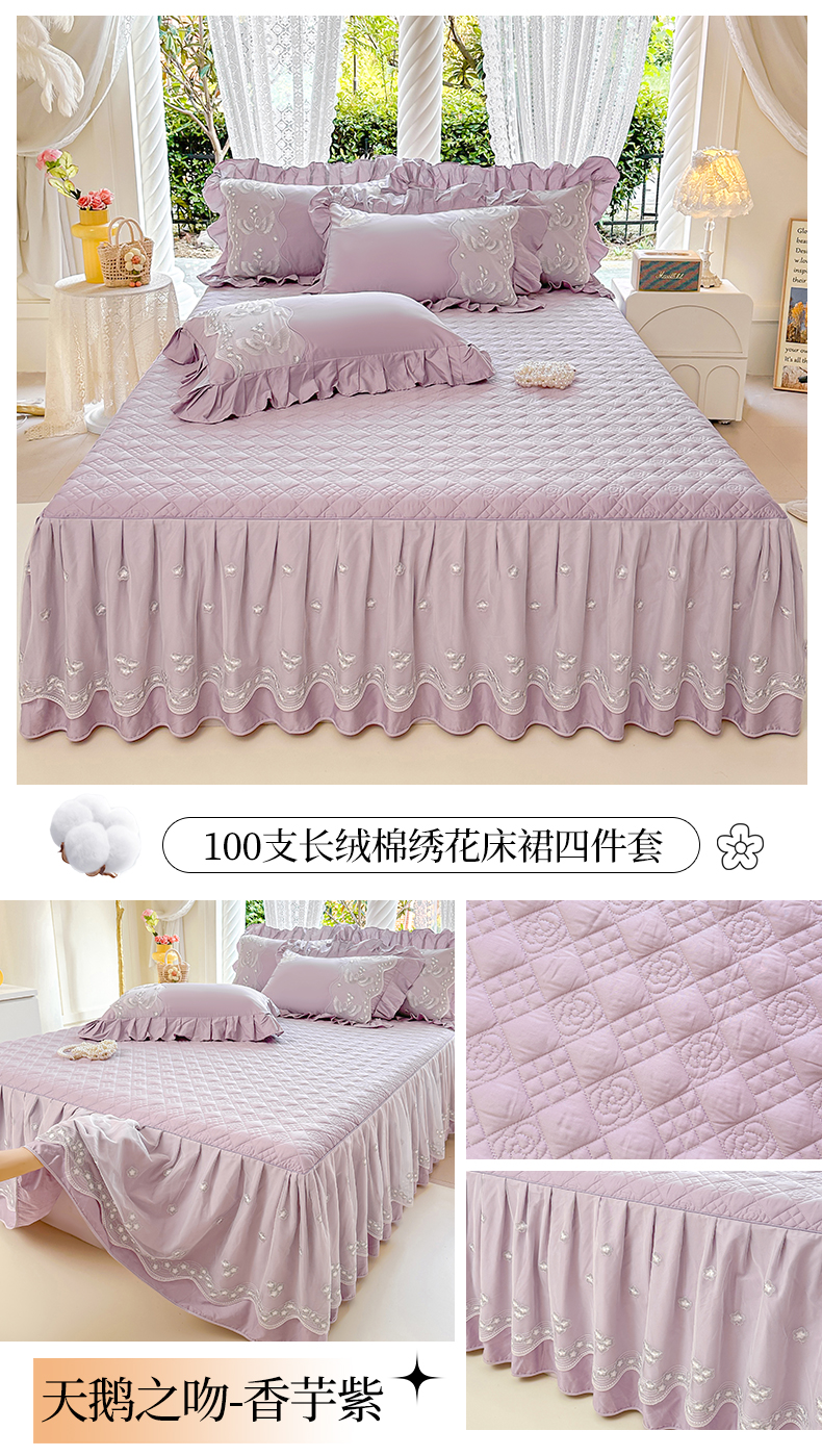 当前位置: 91家纺网 > 商品网购 > 床品套件 > 三件套 > 宜凡家纺 2025新款长绒棉绣花夹棉床裙三件套--天鹅之吻系列 天鹅之吻-浅咖
