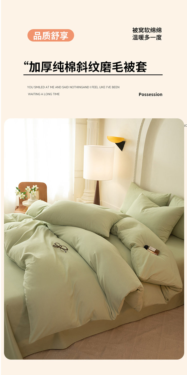 (总)八十八家纺 2025新款纯棉加厚磨毛四件套及单品系列-四件套,加厚果绿,加厚红豆,加厚卡其,加厚浅紫,加厚天蓝,加厚银灰,加厚中灰