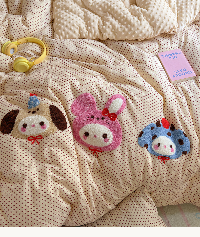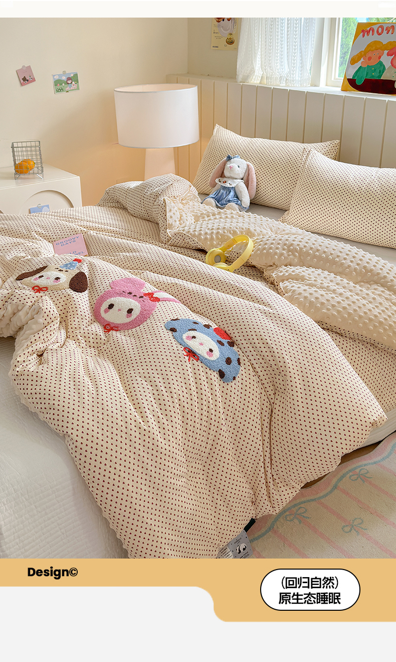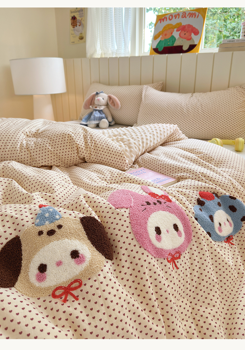 (总)寐居家纺 2025新款贴布绣高克重牛奶绒四件套,安吉拉喵,查理狗,粉糯kitty,皮皮布布
