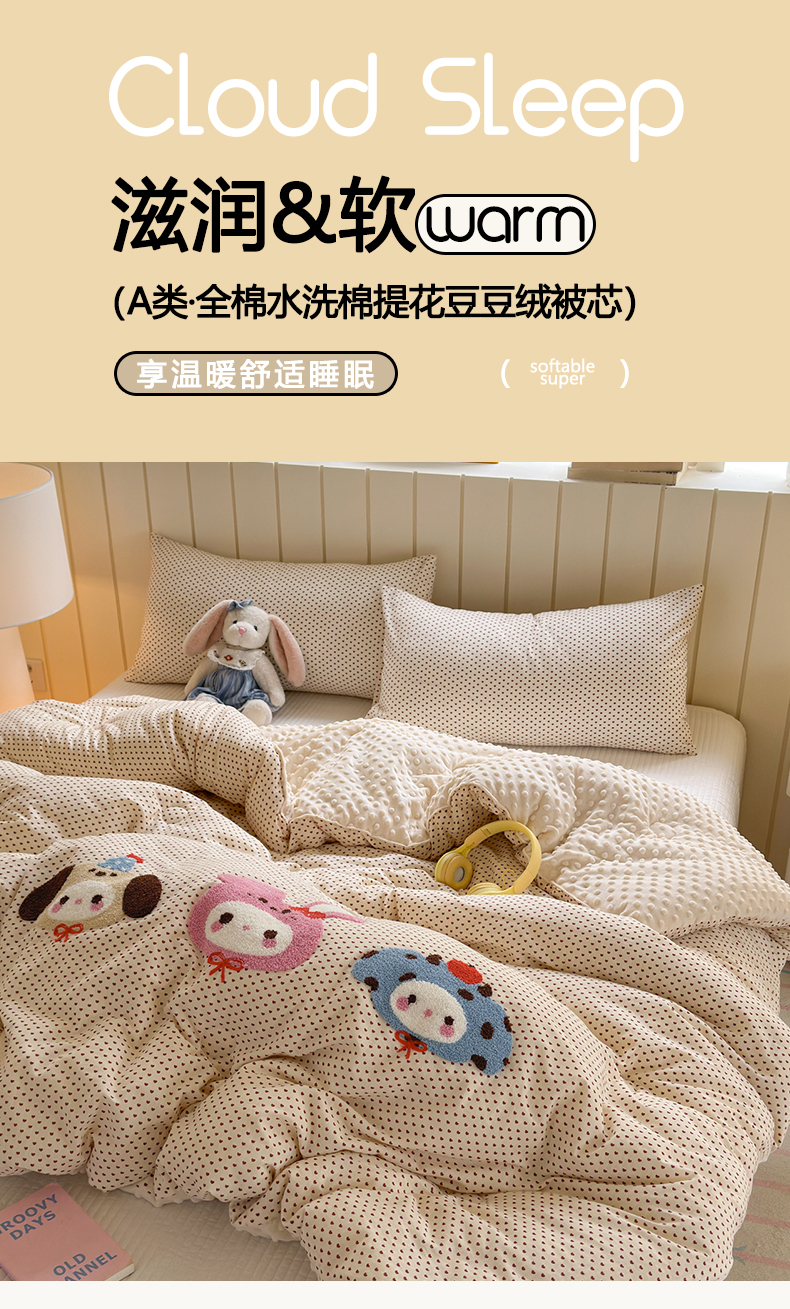 寐居家纺 2025新款全棉水洗棉豆豆绒被芯被子 宠物聚会