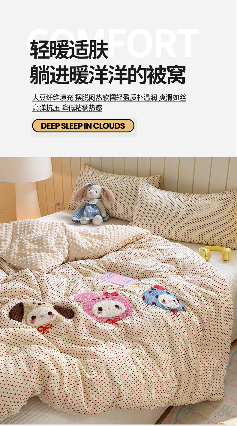 商品名称:寐居家纺 2025新款全棉水洗棉豆豆绒被芯被子 宠物聚会