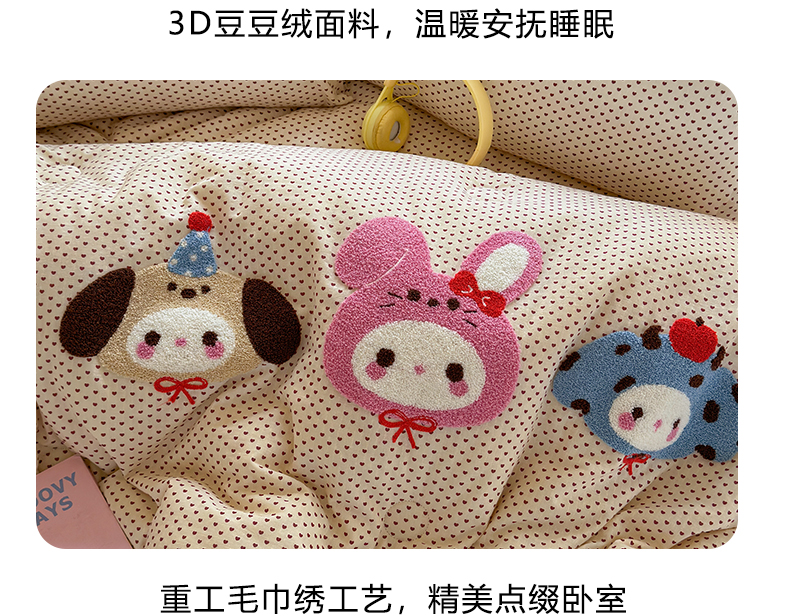 (总)寐居家纺 2025新款毛球毛巾绣牛奶绒四件套,毛球球·巴克汪仔,毛球球·豆蔻女孩,毛球球·奶黄拉布,毛球球·心动KT喵,组合图仅供展示不可下单